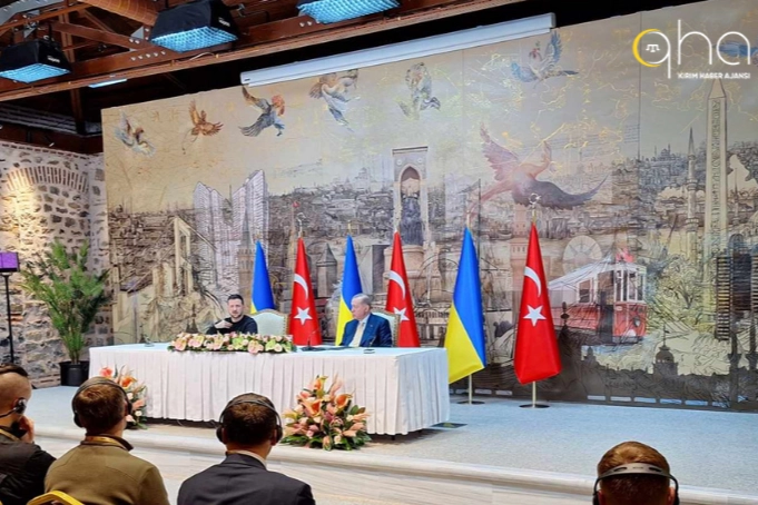 Zelenskıy, toplantıda gazetecilerin sorularını cevaplarken Cumhurbaşkanı Erdoğan’ın her zaman Ukrayna toprak bütünlüğüne destek verdiğine dikkat çekerek, “Sayın Erdoğan her zaman açık bir şekilde Kırım dahil Ukrayna’nın toprak bütünlüğünü tanıdığını söylüyor. Her zaman Kırım Tatarlarını savunuyordu. Ona bu kararlı destek için teşekkür ediyorum.” dedi.