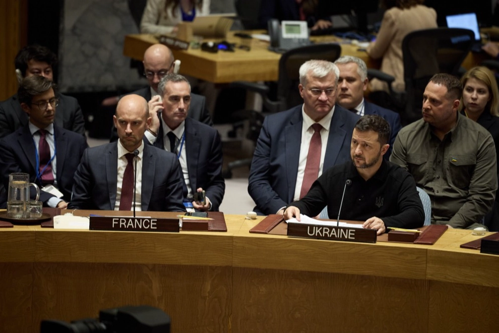 Ukrayna Cumhurbaşkanı Volodımır Zelenskıy, 24 Eylül 2024 tarihinde Birleşmiş Milletler Güvenlik Konseyine (BMGK) "Ukrayna'nın Barış ve Güvenliğinin Sağlanması" başlığıyla düzenlenen oturumda hitap etti. Cumhurbaşkanı Zelenskıy, konuşmasına "Bir gün bu salonda Rusya'nın Ukrayna'ya karşı yürüttüğü savaşın sona erdiği söylenecek, dondurulmamış, duraklatılmamış, unutulmamış. Gerçekten sona erdiği söylenecek." ifadeleriyle başladı.