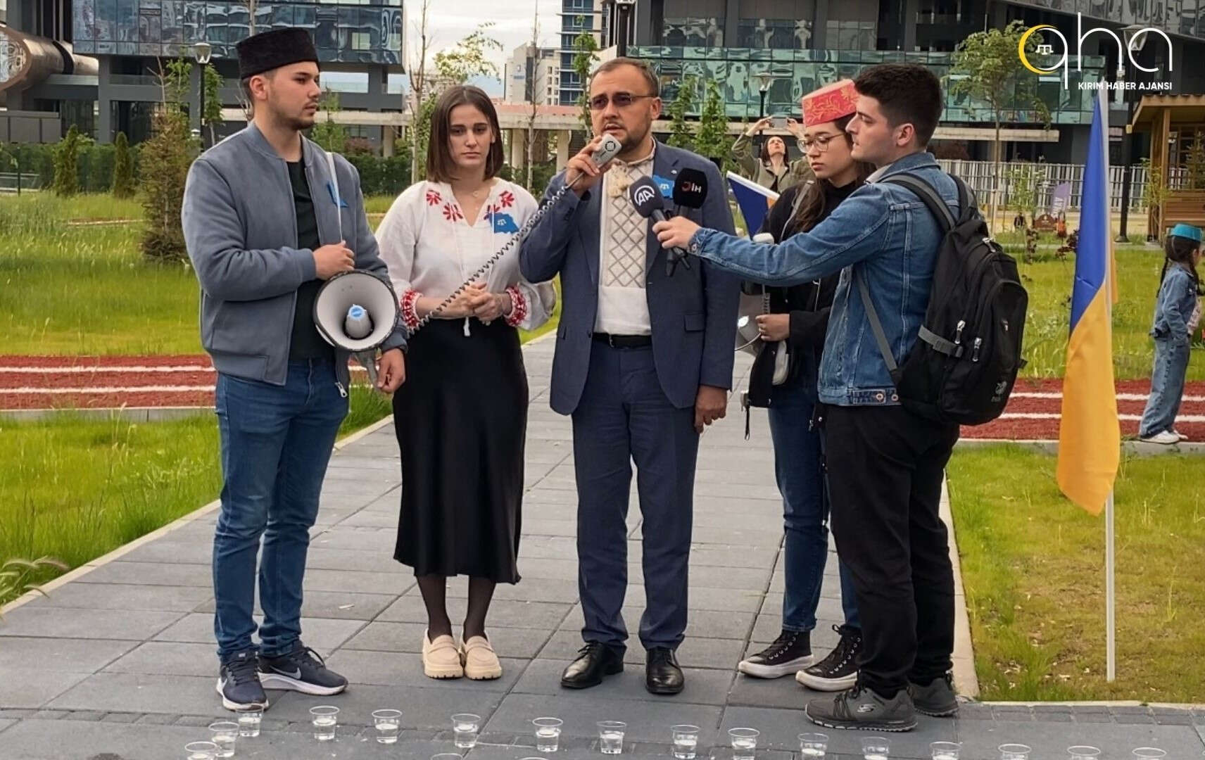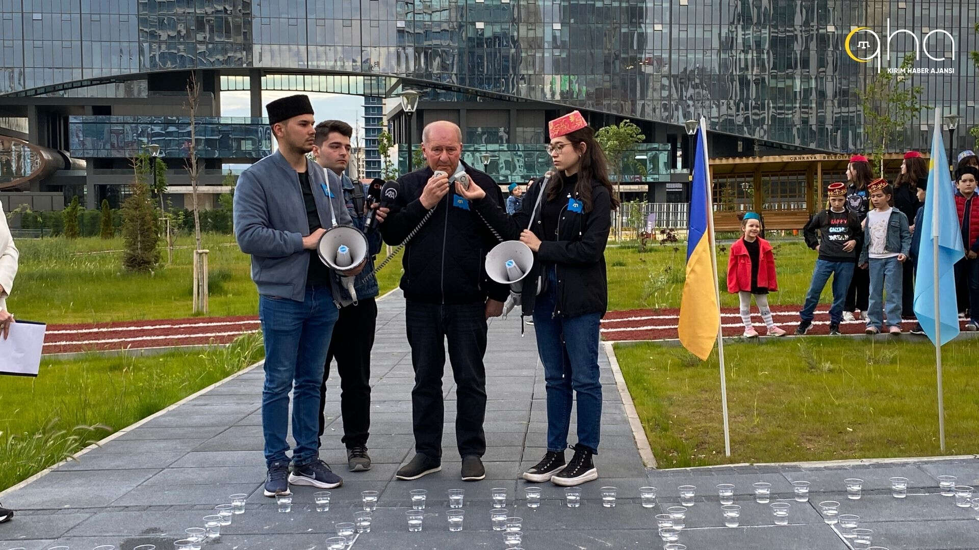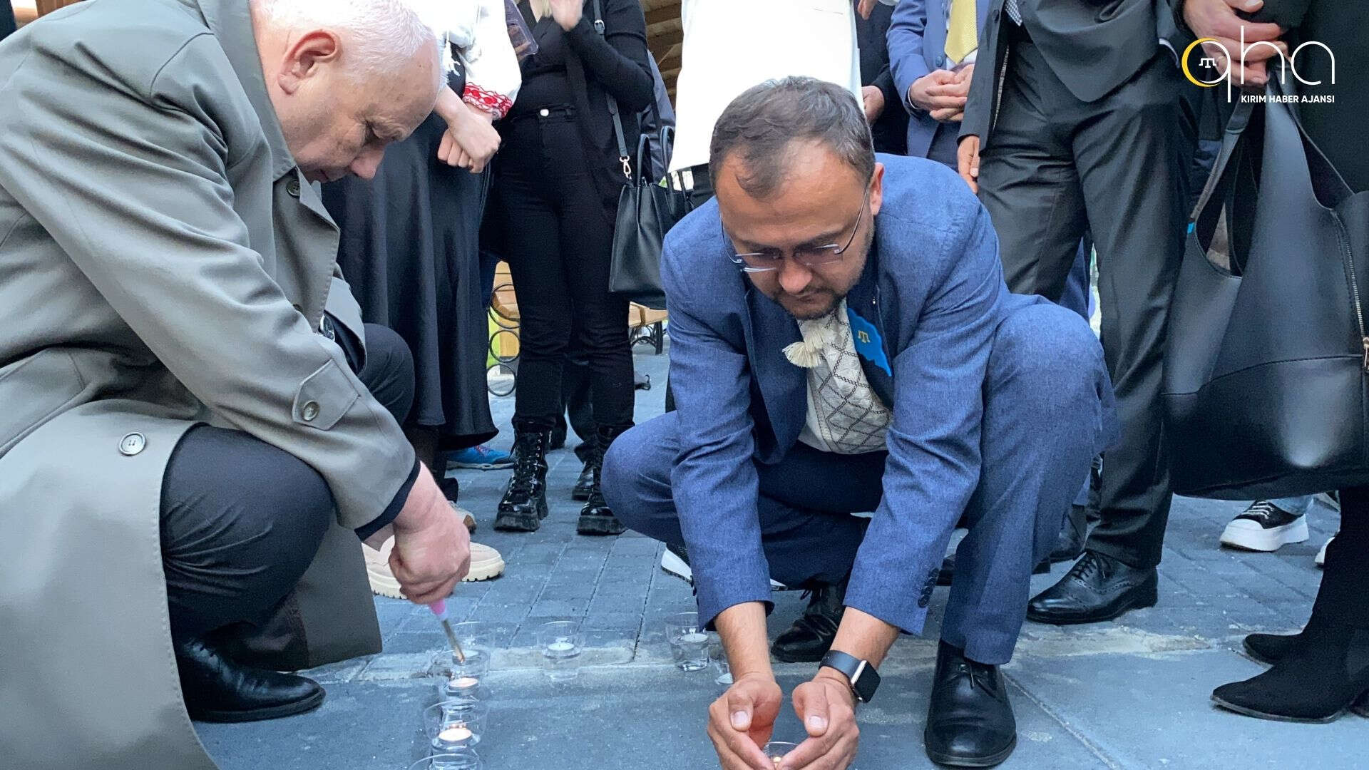 Basın açıklamasından sonra Kırım Tatar çocukları ve katılımcılar, 18 Mayıs 1944 Kırım Tatar Sürgünü ve Soykırımı'nda hayatını kaybedenler anısına mum yaktı.