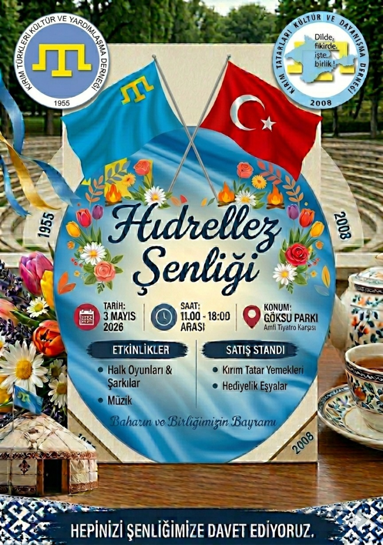 Kırım Tatarları, Kırım Türkleri Kültür ve Yardımlaşma Derneği ile Etimesgut Kırım Tatarları Kültür ve Dayanışma Derneği tarafından ortak düzenlenen Hıdırellez kutlamasında bir araya gelecek.