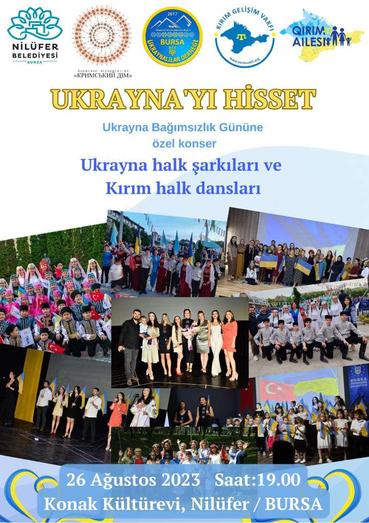Bursa Ukraynalılar Derneğinin öncülüğünde düzenlenen etkinlik; Nilüfer Belediyesi, Kırım Gelişim Vakfı Bursa Şubesi, Kıyiv'deki Kırım Evi kültür Merkezi, Kırım Ailesi’nin katkıları ile gerçekleştirilecek. Ukrayna Bağımsızlık Günü'ne özel konser programı kapsamında, Ukrayna halk şarkıları ve Kırım halk dansları icra edilecek.