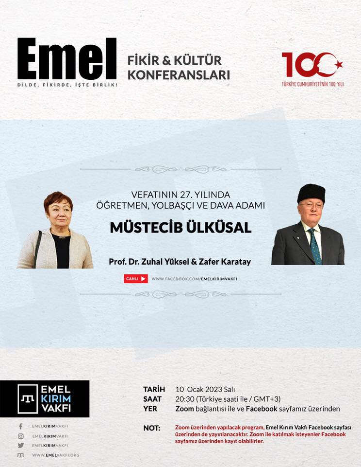 Emel Dergisi ve Emel Kırım Vakfının kurucusu, ömrünü Kırım Türklerinin milli mücadelesi için harcayan öğretmen, dava adamı Müstecib Ülküsal, vefatının 27. yılında Emel Kırım Vakfı tarafından organize edilen Emel Fikir ve Kültür Konferansları'nda anılacak.