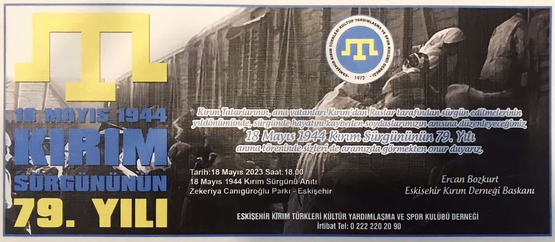 Türkiye'deki Kırım Tatar diasporası, Eskişehir’de 18 Mayıs 1944 Kırım Tatar Sürgünü ve Soykırımı'nın 79. yıldönümü dolayısıyla, bir dizi etkinlik ile 18 Mayıs 1944 Kırım Tatar Sürgünü ve Soykırımı'nı anacak.