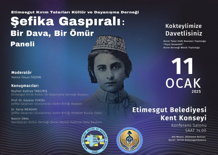 Etimesgut Kırım Tatarları Kültür ve Dayanışma Derneği ile Şefika Gaspıralı Uluslararası Kadın Birliği, 11 Ocak 2025 tarihinde gerçekleştirilecek olan panel ile Şefika Gaspıralı'yı anacak.