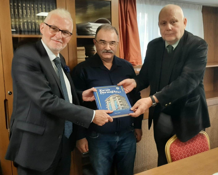 Kırım Derneğinin 70. yıl dönümü vesilesiyle yapılan faaliyetlerine de değerlendirildiği toplantının sonunda Derneğin 70 yılını anlatan “Kuruluşunun 70. Yıl Dönümünde Kırım Derneği” isimli kitap Başkan Şahin tarafından Büyükelçi Michael Roux’a hediye edildi.