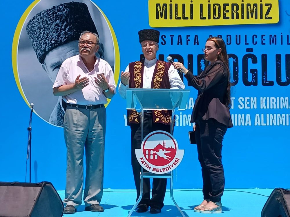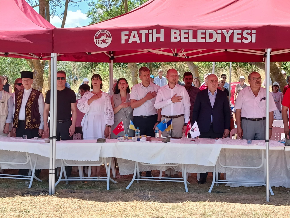 Tepreş Şenliğinde Kırım Derneği İstanbul Şubesi Başkanı İçten, Tepreş ağası ve Fatih Belediye Başkanı Turan ve Ukrayna Başkonsolosu Nedilskıy konuşma yaptı.