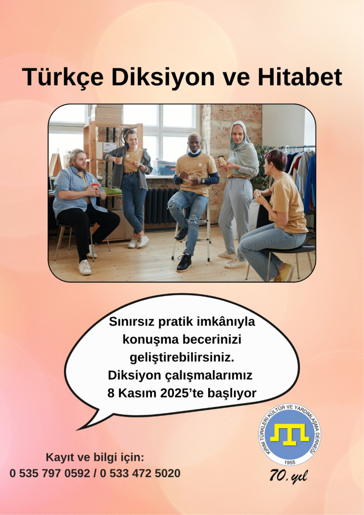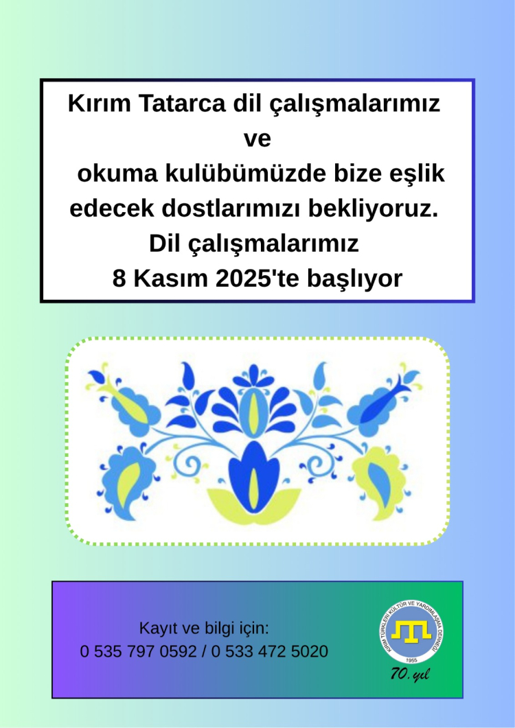 Bu sene 70. yılını dolduran Kırım Türkleri Kültür ve Yardımlaşma Derneği, yeni döneme dil çalışmaları ve okuma kursu açarak başlıyor. Dil çalışmaları kapsamında Kırım Tatarca, Ukraince ile Slav dillerinin yanı sıra Türkçe Diksiyon ve Hitabet eğitimi verilecek.