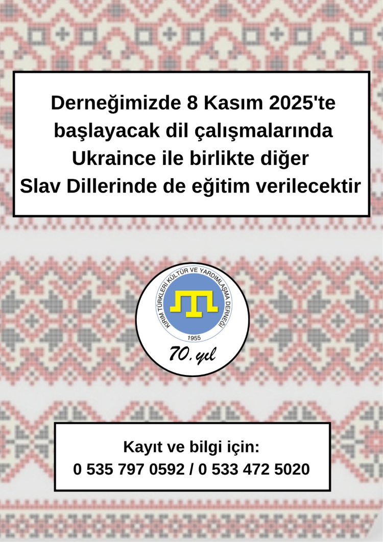 Kırım Derneği Genel Merkezi, Kırım Tatarca, Ukraince ile Slav dillerinin yanı sıra Türkçe Hitabet ve Diksiyon alanında dil çalışmaları kursu açtı. Dil çalışmaları 8 Kasım 2025 tarihi itibarıyla başlayacak.