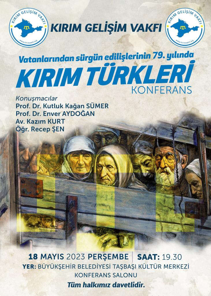 Kırım Gelişim Vakfı, acı sürgünün yıldönümünde, 18 Mayıs 2023'te "Vatanlarından Sürgün Edilişlerinin 79. Yılında Kırım Türkleri" başlıklı konferans düzenleyecek. Eskişehir'de Taşbaşı Kültür Merkezi Konferans Salonu'nda saat 19.30'da yapılacak konferans etkinliğine konuşmacı olarak Odunpazarı Belediye Başkanı Av. Kazım Kurt, İstanbul Üniversitesi Prof. Dr. Kutluk Kağan Sümer, Ankara Hacı Bayram Veli Üniversitesi Prof. Dr. Enver Aydoğan, Öğretmen Recep Şen yer alacak.