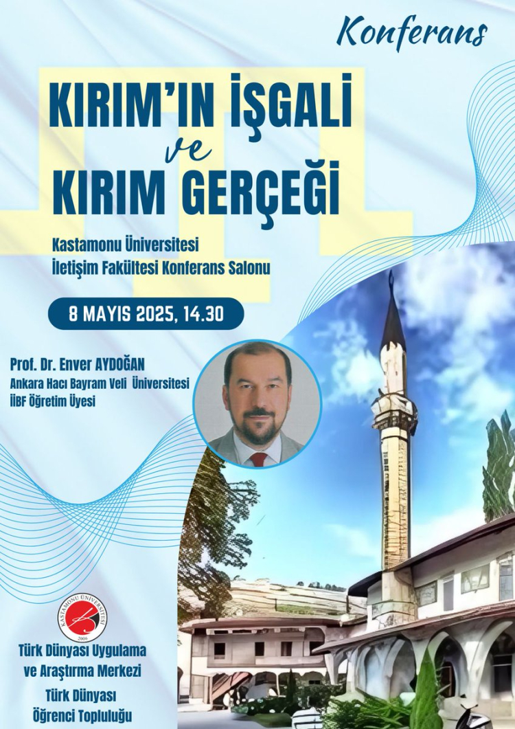 Kastamonu Üniversitesi Türk Dünyası Uygulama ve Araştırma Merkezi ve Türk Dünyası Öğrenci Topluluğu ortaklığında, 8 Mayıs 2025 tarihinde "Kırım İşgali ve Kırım Gerçeği" konferansı tertip edilecek.