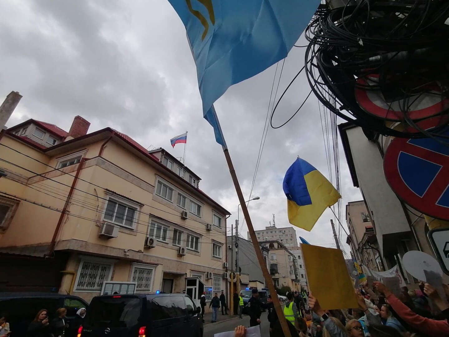 Romanya'daki Kırım Tatar diasporası ve Ukraynalılar, genç yaşlı, kadın erkek topyekün bir şekilde protestoya katıldı. İşgalci Rusya'nın Konsolosluk binası önünde, Ukrayna, Romanya ve Kırım Tatar bayraklarıyla Ukrayna'daki Rus işgali ve saldırıları protesto edildi.