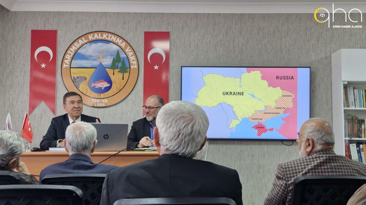 Tarımsal Kalkınma Vakfı (TAK-VA) tarafından tertip edilen Cumartesi Sohbetleri'nde, bu hafta Kırım Türkleri Kültür ve Yardımlaşma Vakfı Başkanı Tuncer Kalkay konuk oldu. Kalkay, "Kırım Neden Gündemde ve Sahibi Kim?" konulu konferansta; Trump'ın sözde barış planı taslağını, Ukrayna'yı, işgal altındaki Kırım'ı ve Kırım Tatarlarını anlattı.