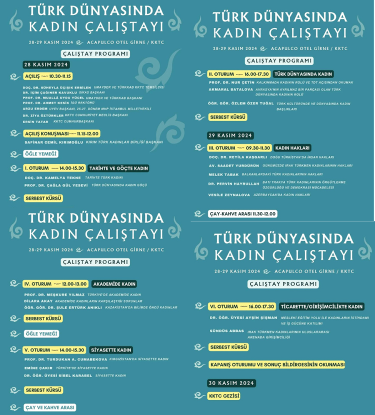 Kuzey Kıbrıs Türk Cumhuriyeti'nin (KKTC) Girne şehri, 28-29 Kasım 2024 tarihleri arasında Türk Dünyasında Kadın Çalıştayı'na ev sahipliği yapacak.