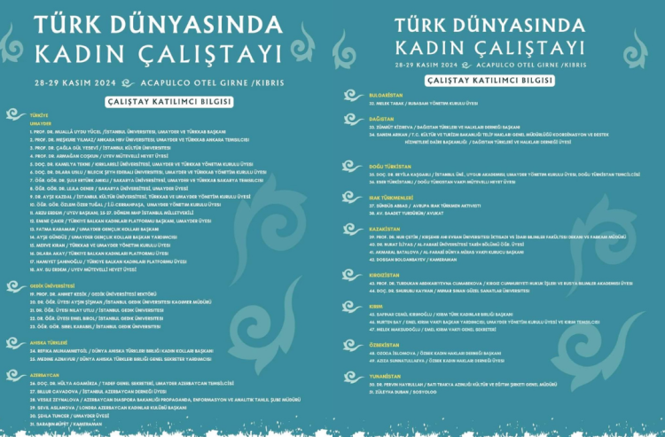 Çalıştay; Umay Ana Türk Dünyası Kadınlar Birliği (UMAY-DER), Kıbrıs Türk Girişimci Kadınlar Derneği, Kadın Akademisyenler Derneği (TÜRKKAB), Özbekistan Kültür Dayanışma ve İş Birliği Derneği, İstanbul Gedik Üniversitesi ve Doğu Akdeniz Üniversitesi Kadın Araştırmaları ve Eğitim Merkezinin katkılarıyla gerçekleşecek.