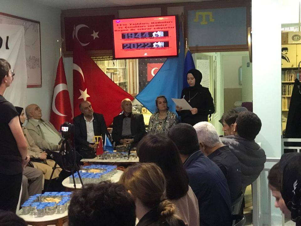 Kırım Derneği Gençlik Komisyonu ve Genç Tatar üyesi Ravza Coşdu Toprak, sürgün tarihini anlattığı konuşmasında Kırım Tatar halkının yüzde 46.2’sinin hayatını kaybettiğini vurgulayarak bu sürgünün esasında açık bir soykırım eylemi olduğunu ifade etti.
