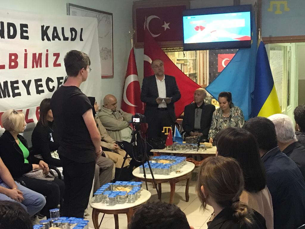 Bir buçuk yaşındayken sürgün edilen ve Vatan Kırım'dan gelerek anma toplantısına katılan Kırım Tatar Milli Hareketi emektarı Zevcet Kurtömer yaptığı konuşmasında kendi şahitliğinde soykırımı, soykırım sonrası gelişen Kırım Tatar Milli Hareketi'ni ve savaşa dair son gelişmeleri anlattı. Kurtömer ayrıca son gelişmelere dair katılımcılardan gelen soruları yanıtladı.