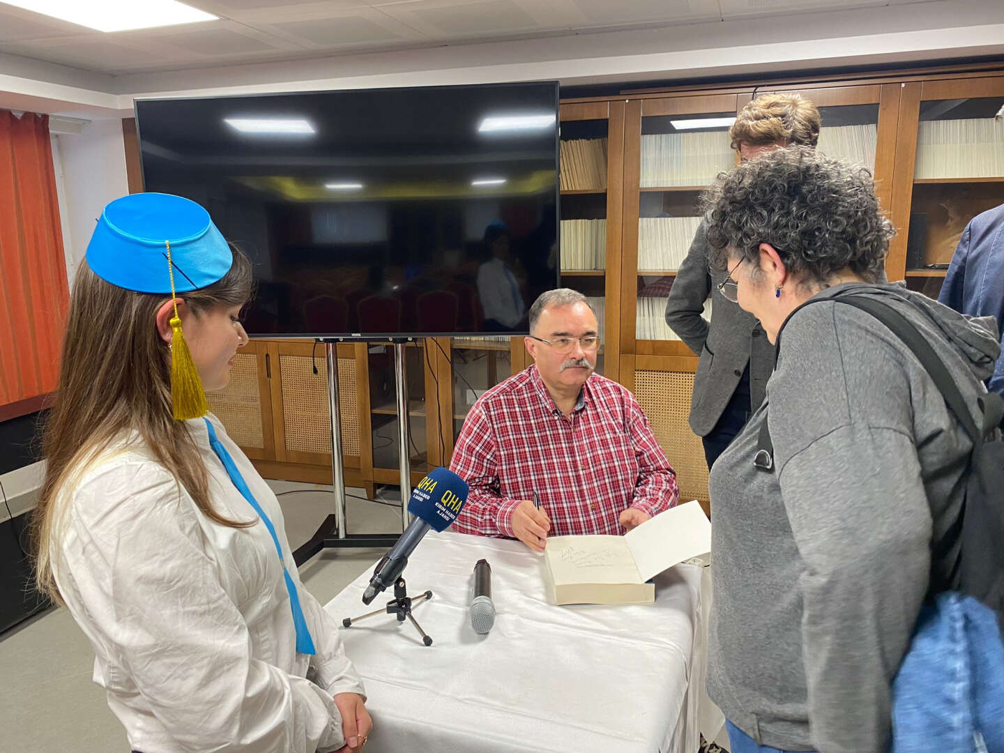 Prof. Dr. Kırımlı, söyleşinin ardından katılımcılara kitaplarını imzaladı.