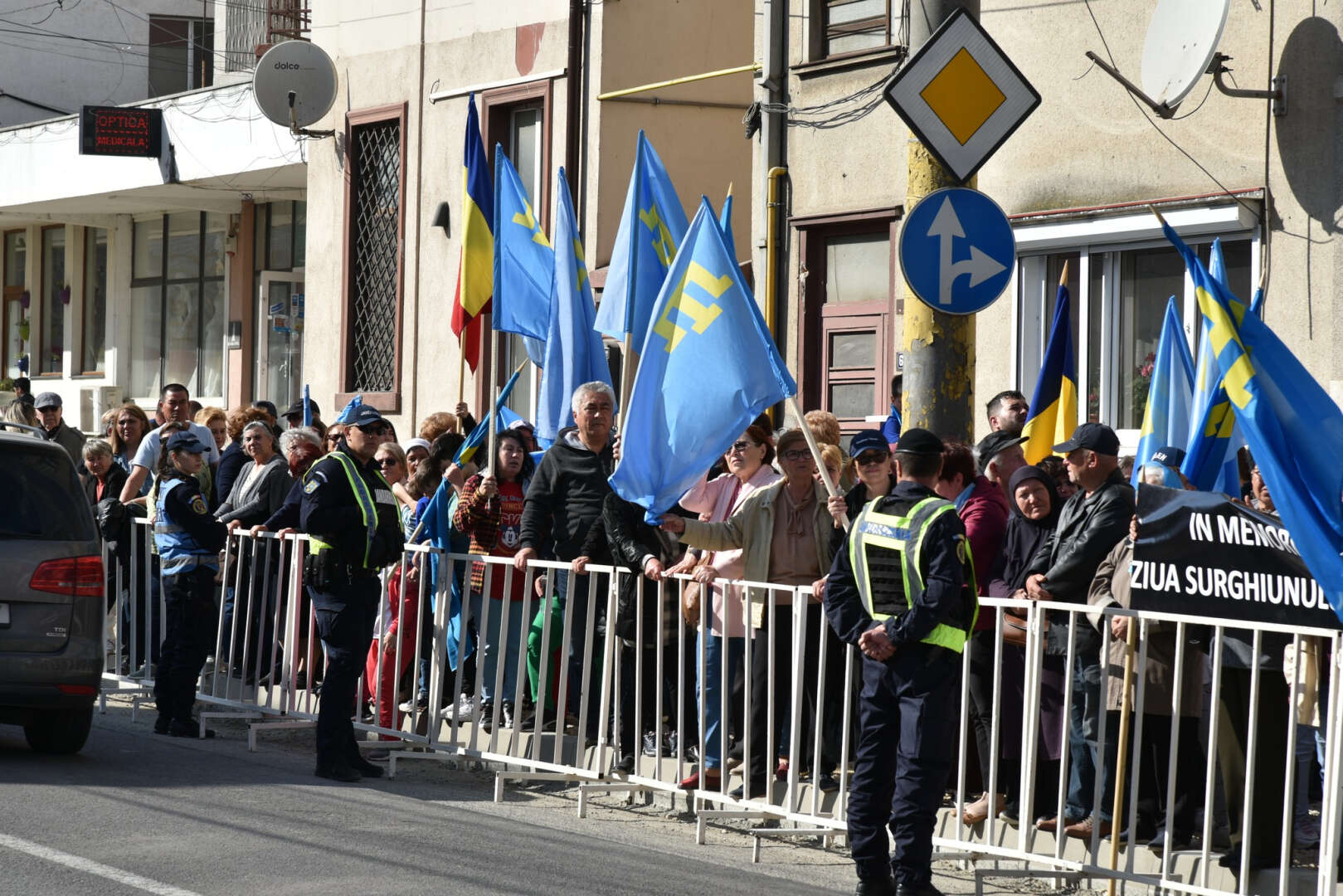 Barışçıl geçen protestoda Avrupa Birliği, Romanya ve Kırım Tatar bayrakları göndere çekildi. 18 Mayıs 1944 Kırım Tatar Sürgünü ve Soykırımı anısına pankartlar sergilendi.