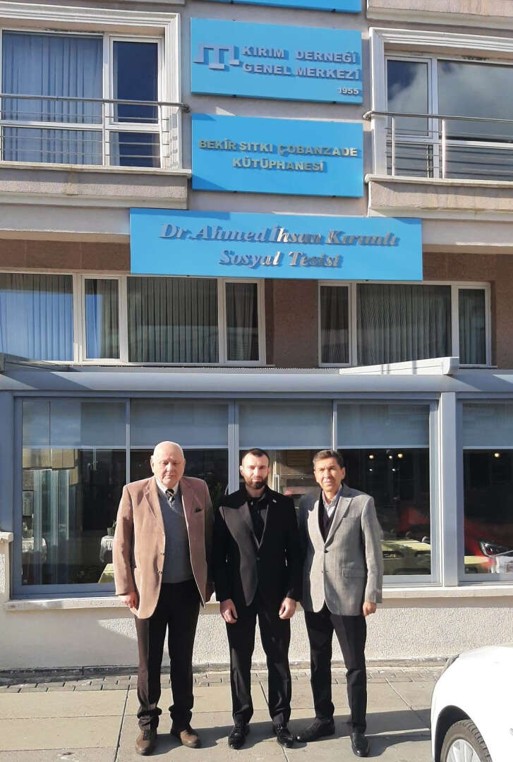 Sürgündeki Çeçen İçkerya Cumhuriyeti Türkiye ve Ortadoğu Temsilcisi Abdûlhakim Şaptukayev, bugün Kırım Derneği Genel Merkezini ziyaret etti. Şaptukayev, Kırım Derneği Genel Başkanı Mükremin Şahin ve Kırım Derneği Genel Merkezi Yönetim Kurulu Üyesi ve Kırım Vakfı Başkanı Tuncer Kalkay tarafından karşılandı. Şahin ve Kalkay, Şaptukayev'e çalışmalar hakkında bilgi verdi.