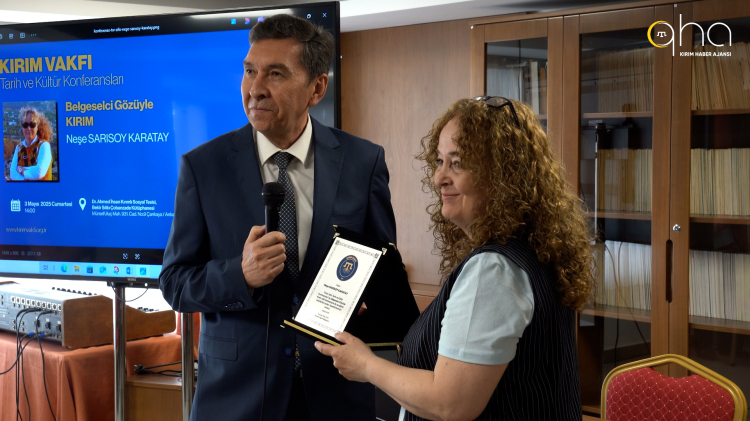 Program kapanışında Kırım Vakfı Başkanı Tuncer Kalkay, yapımcı ve yönetmen Neşe Sarısoy Karatay’a plaket takdim etti.