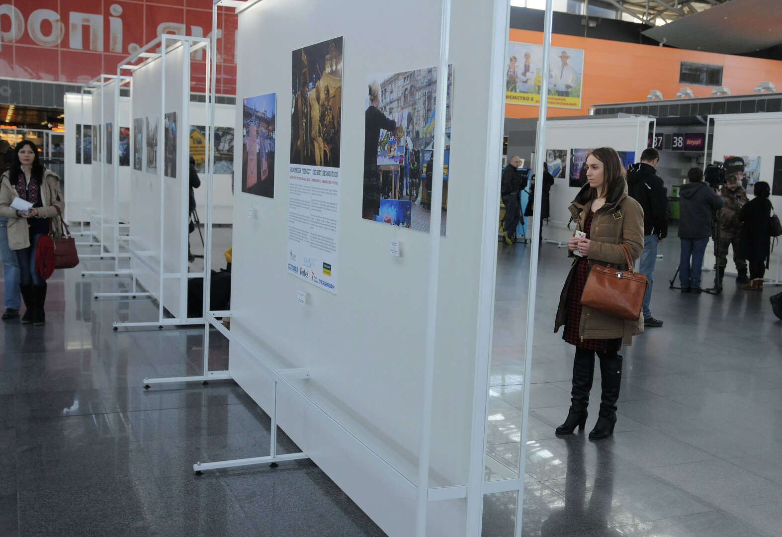 Kiev’in Borispol uluslararası havalimanında, Ukrayna’nın geleceği için hayatını veren Euromeydan eylemlerinin kahramanları anısına düzenlenen etkinlikler kapsamında “Onur Devrimi. Geleceği Özgür İnsanlar Kurar” adlı sanat eylemi düzenlendi.
