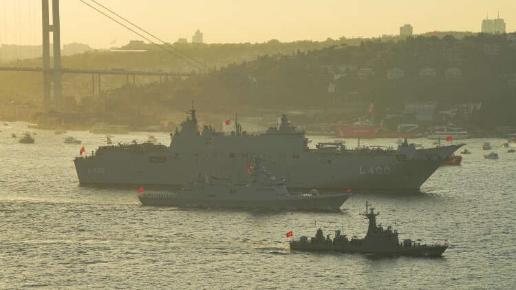 Türkiye'nin 100. yıl kapsamında İstanbul Boğazı'ndan 100 savaş gemisi geçirdiğini manşete taşıyan Pronews, Ankara'nın "güç gösterisi" yaptığını vurguladı.