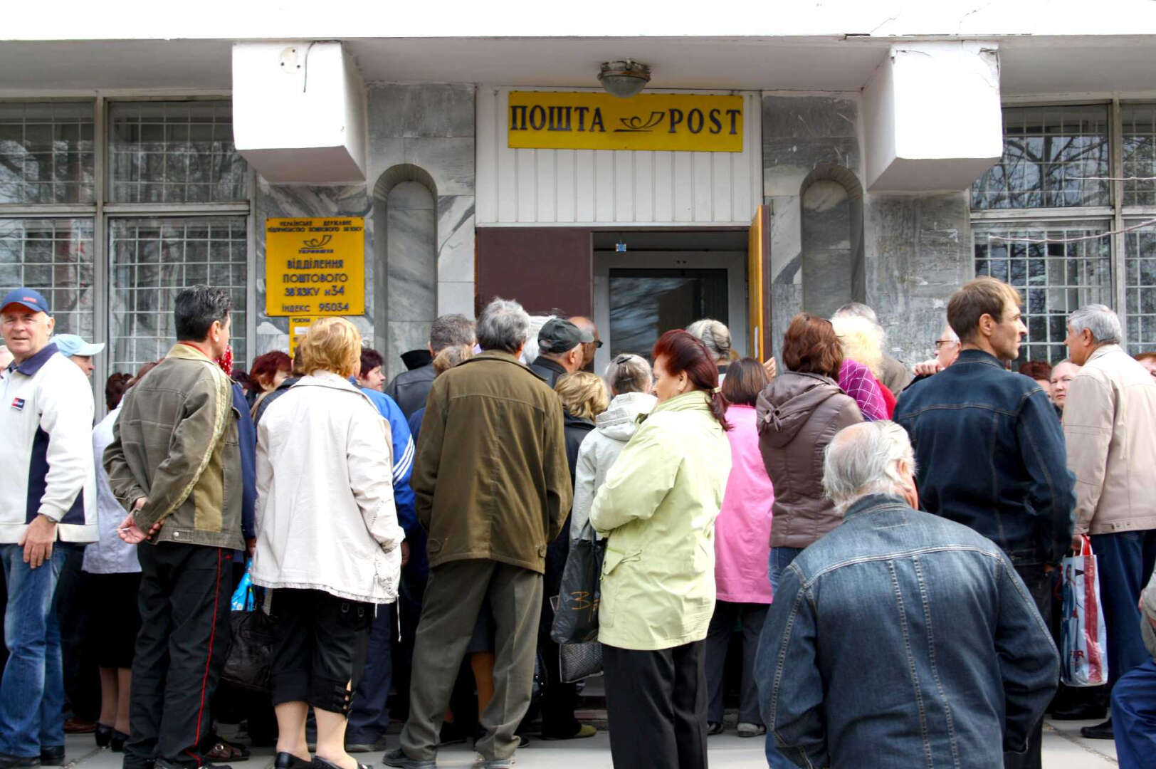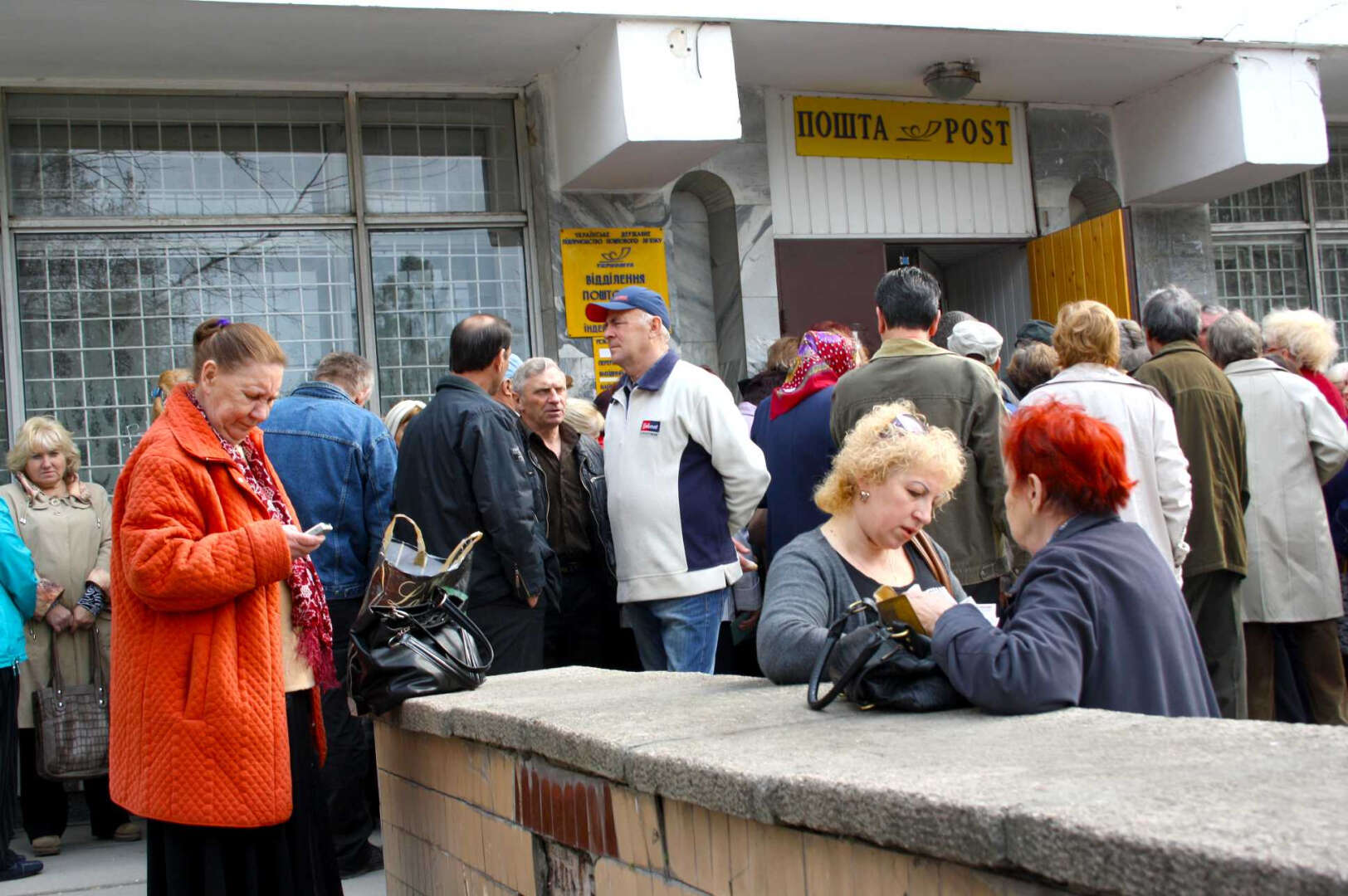 Kırım’da posta şubeleri önünde, emekliler maaşlarını almak için uzun kuyruklar oluşturuyor.