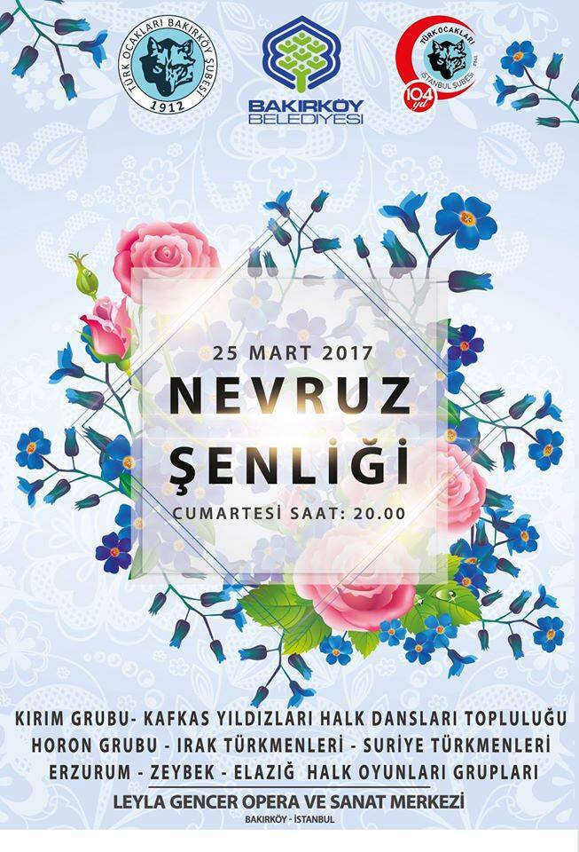 İstanbul Kırım Türkleri Derneğinin Halk oyunları ekibi 25 Mart 2017 cumartesi akşamı Bakırköy Leyla Gencer Kültür Merkezinde İstanbul Türk Ocakları, Bakırköy Türk Ocakları ve Bakırköy Belediyesi tarafından düzenlenen Nevruz programına katıldı.