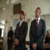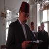 LİTVANYA'DA GELEN KARAY CEMAATİNİN İLERI GELENLERI MARKAS LAVRINOVICIUS VE GROGORIUS AHMEDOVIC LAVRINOVICIUS KARDEŞLER DE II. MAHMUT DÖNEMİNDEN BERİ DİNİ BİR SEMBOL OLARAK TAŞIDIKLARINI İFADE ETTIKLERI FESLERI İLE HASKÖY'DEKİ DİNİ TÖRENE KATILAR