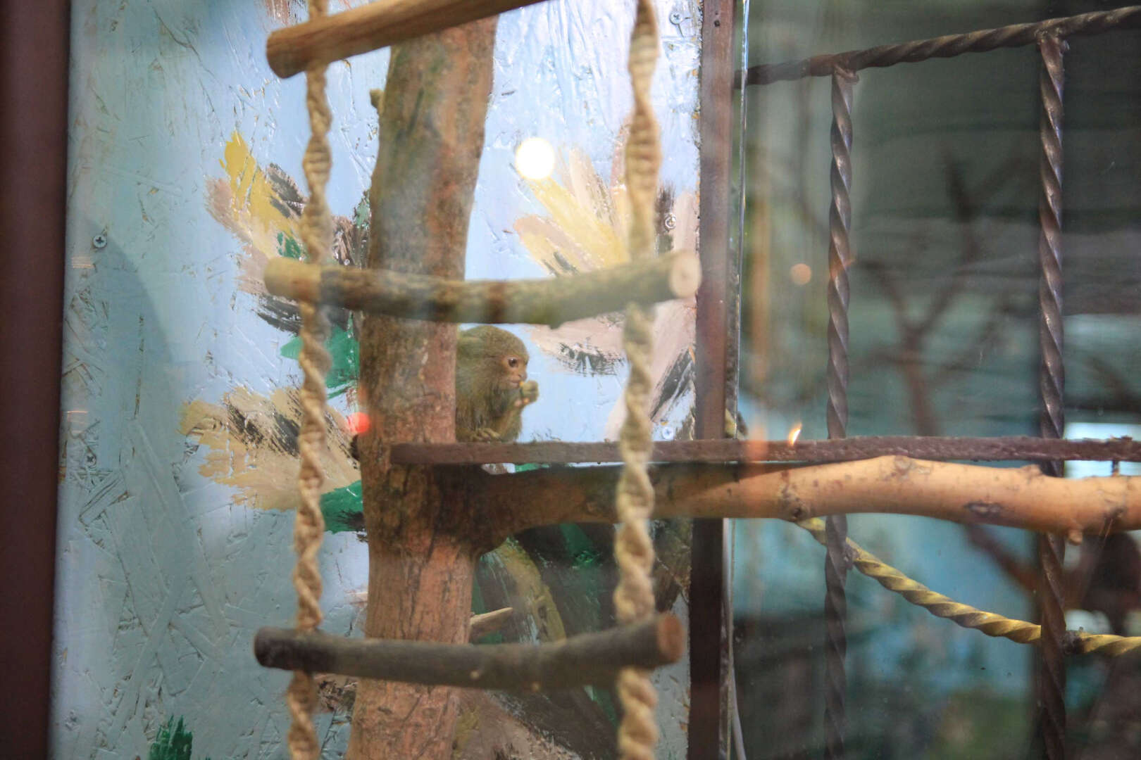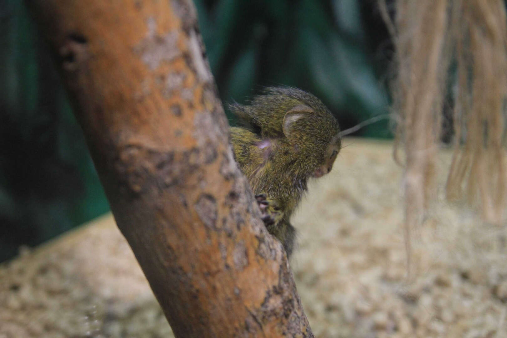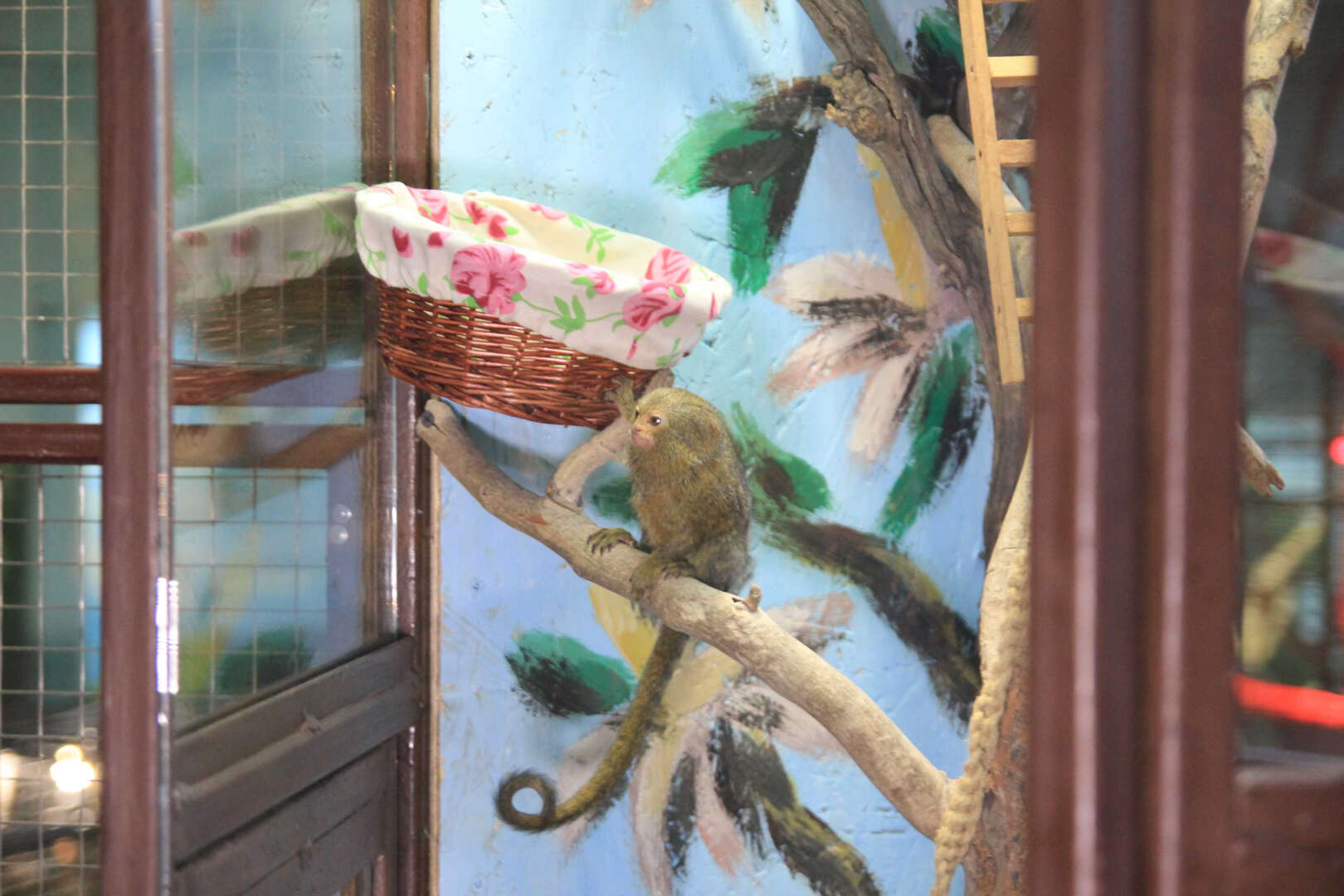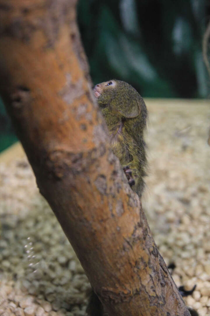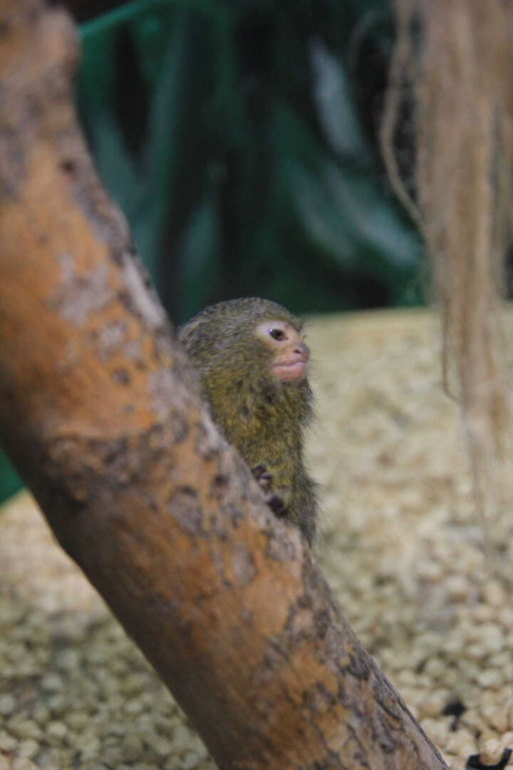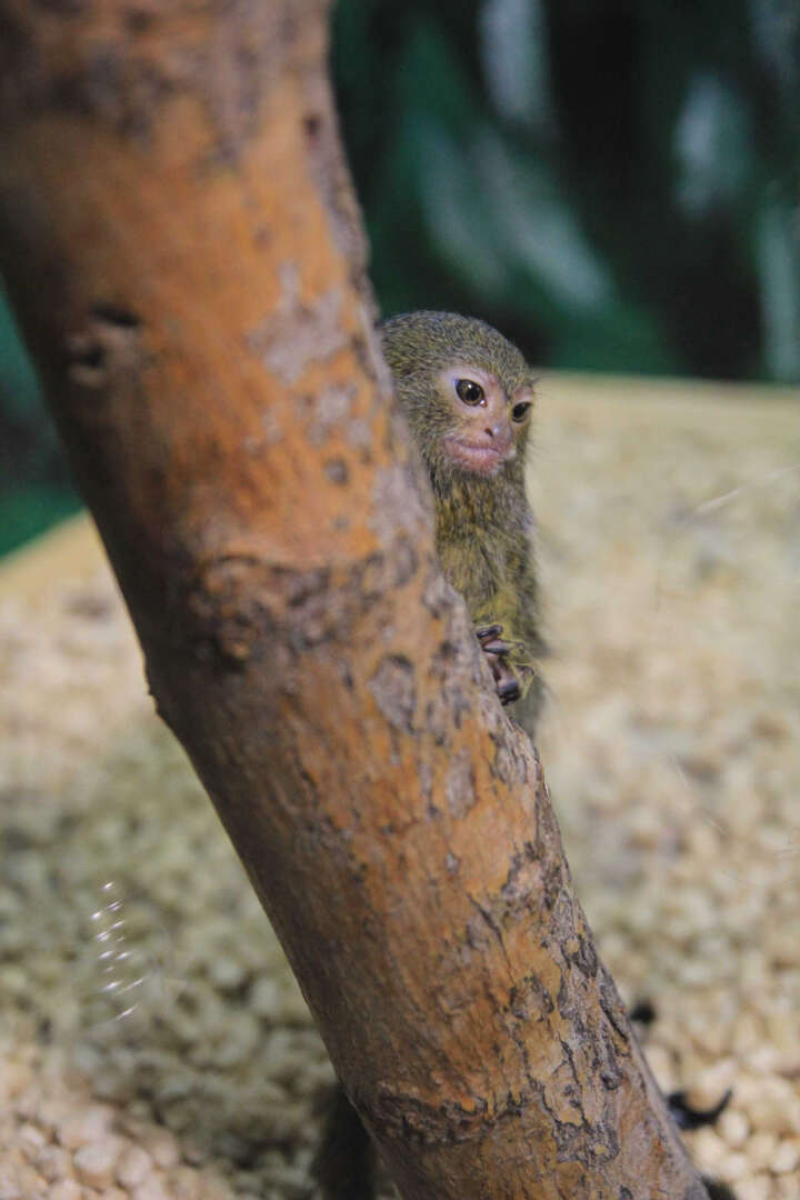 Kezlev tropik parkında cüce ipek maymunu yavrusu sevinci