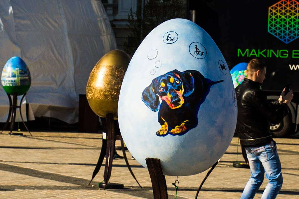 Dev Paskalya yumurtaları 23 Nisan tarihine kadar Sofiyevskaya Meydanı’nda sergilenecek.