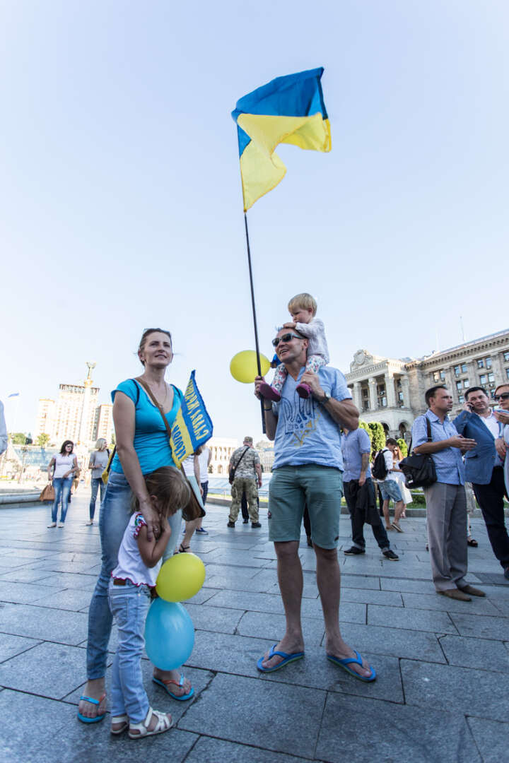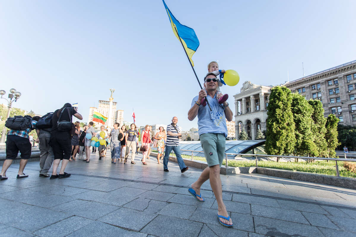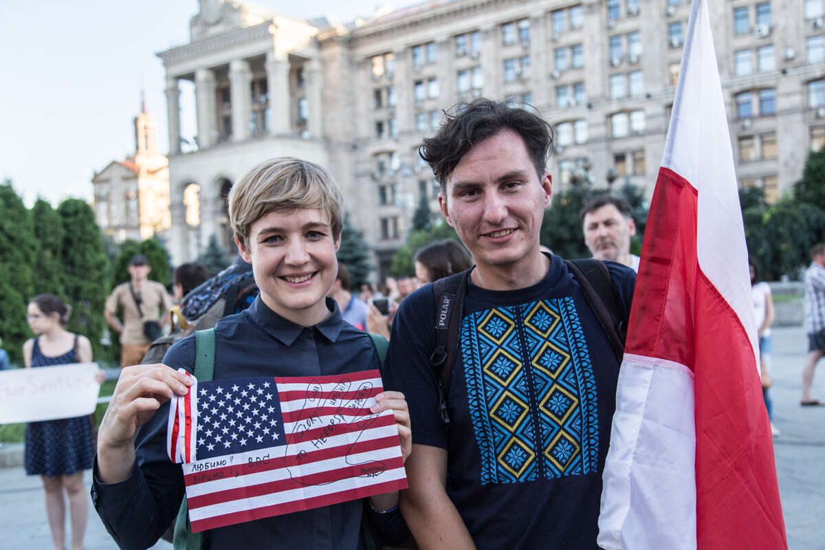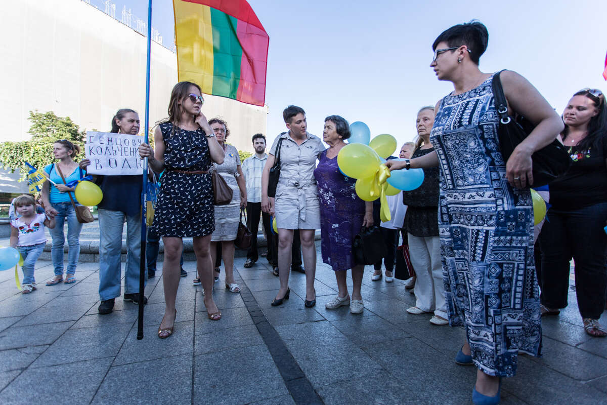 Genç aile Ukraynalı siyasi tutuklu Sentsov’a destek göstermek için etkinliğe katıldı.