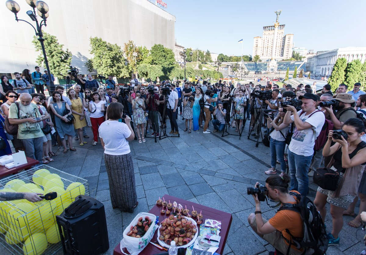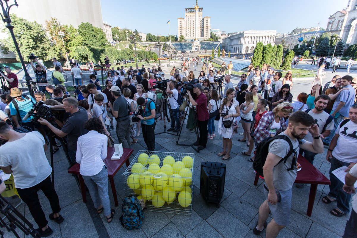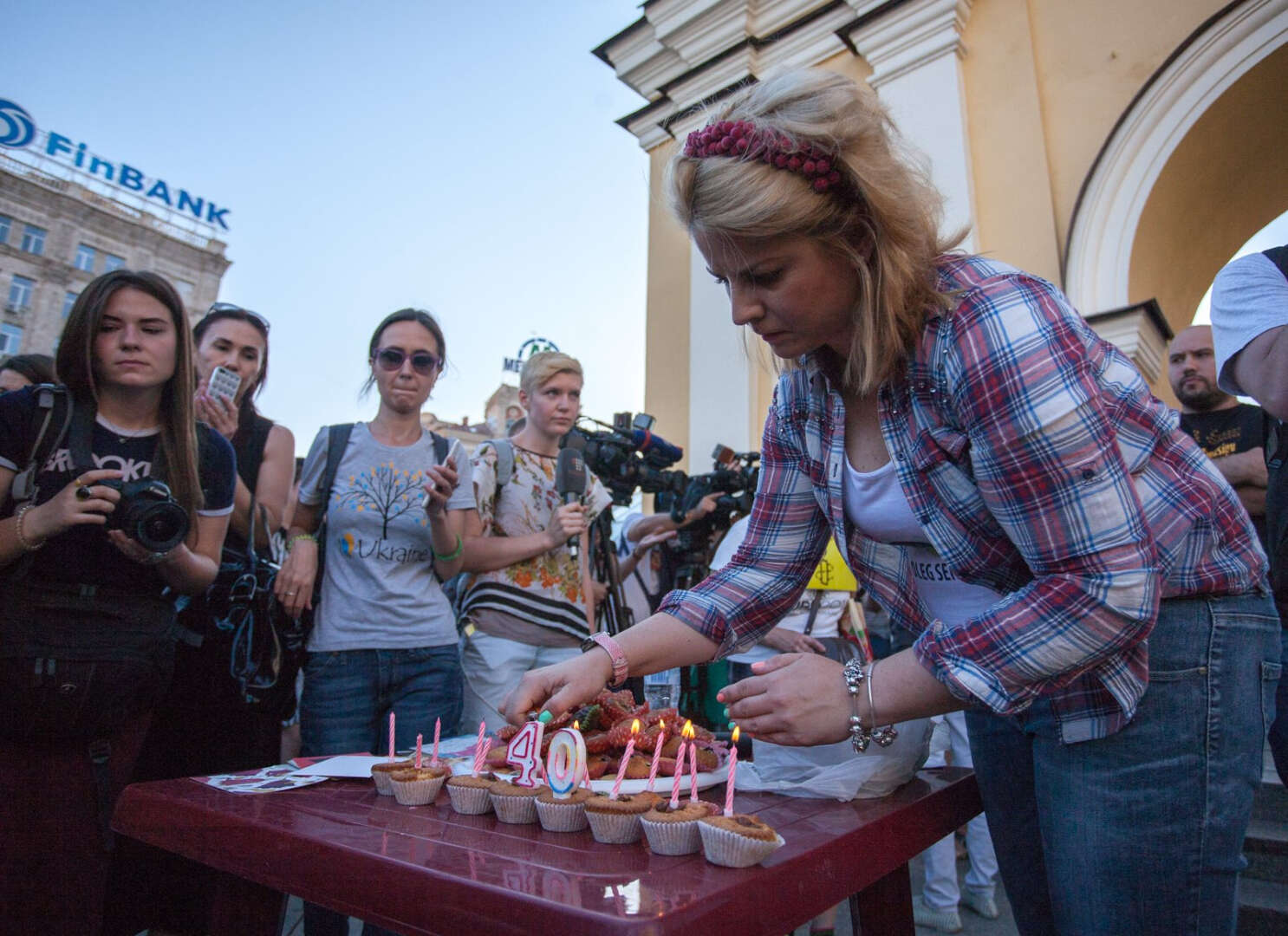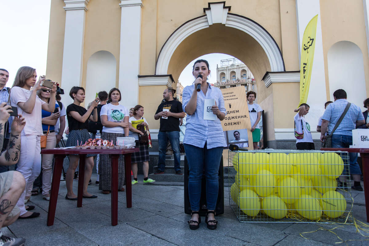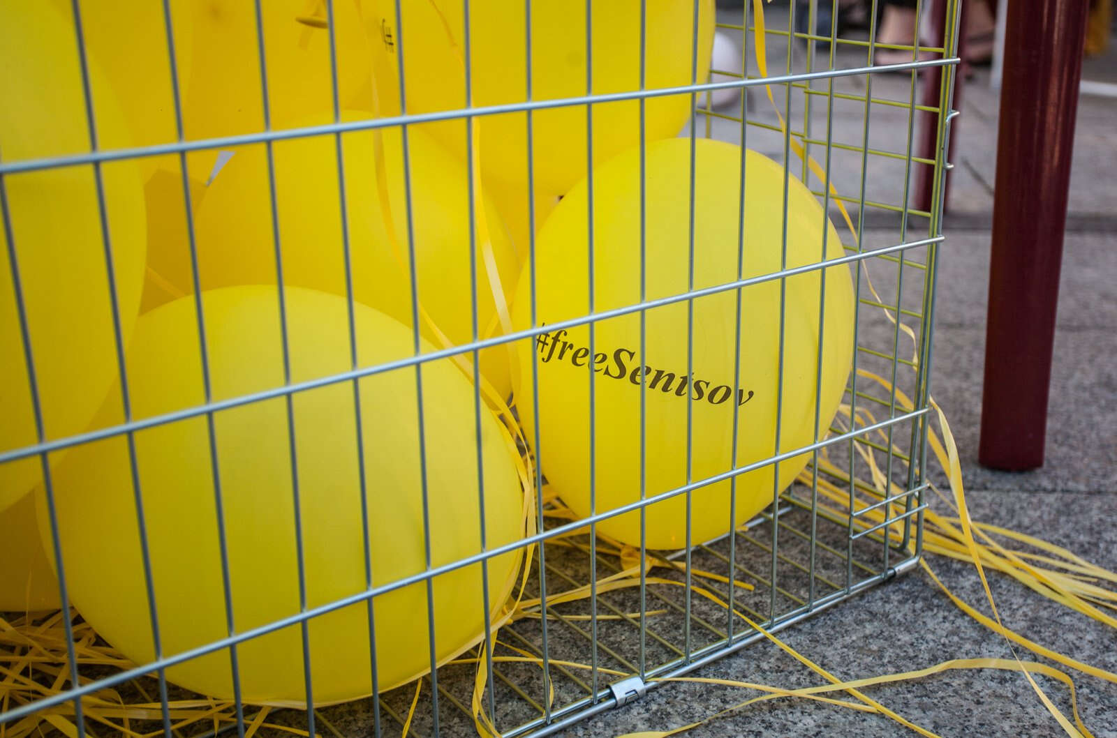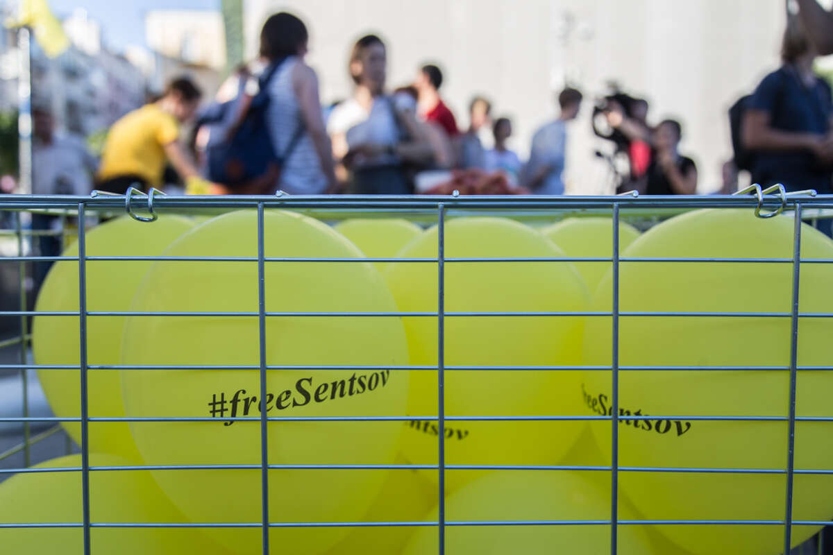 Ekinlik organizatörleri Letmypeoplego teşkilatı, Oleg Sentsov’un 40. doğum günü vesilesiyle üzerinde “FreeSenstov” yazısı olan 40 balon hazırladı.