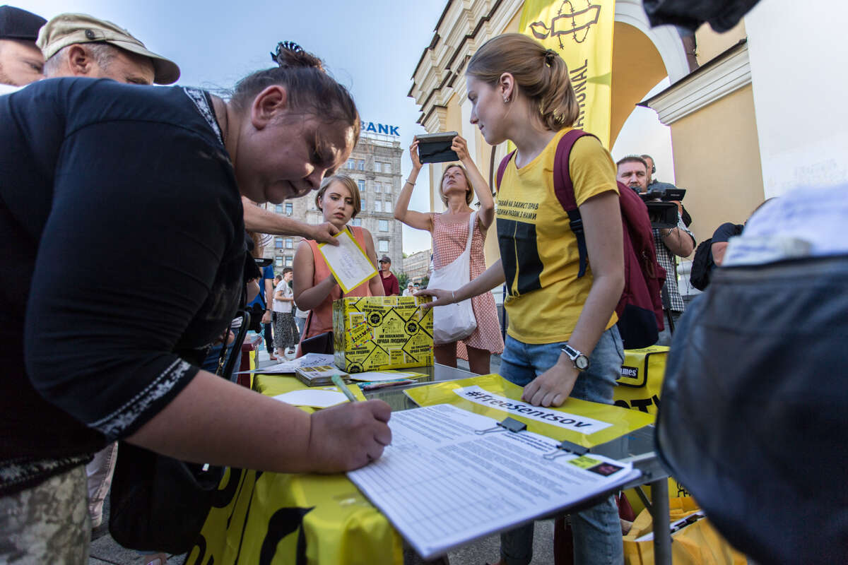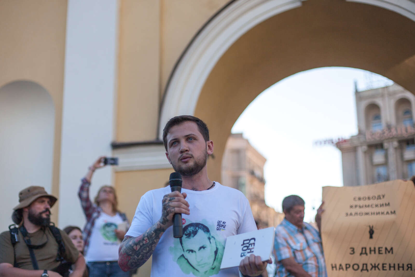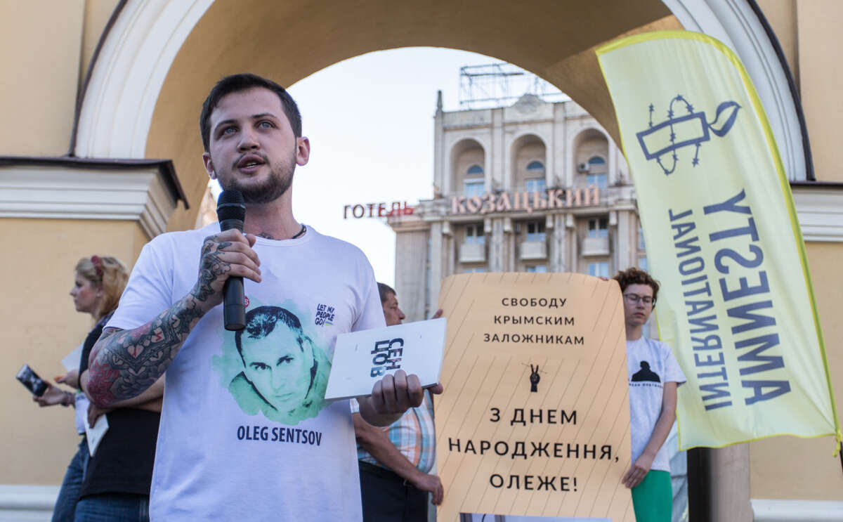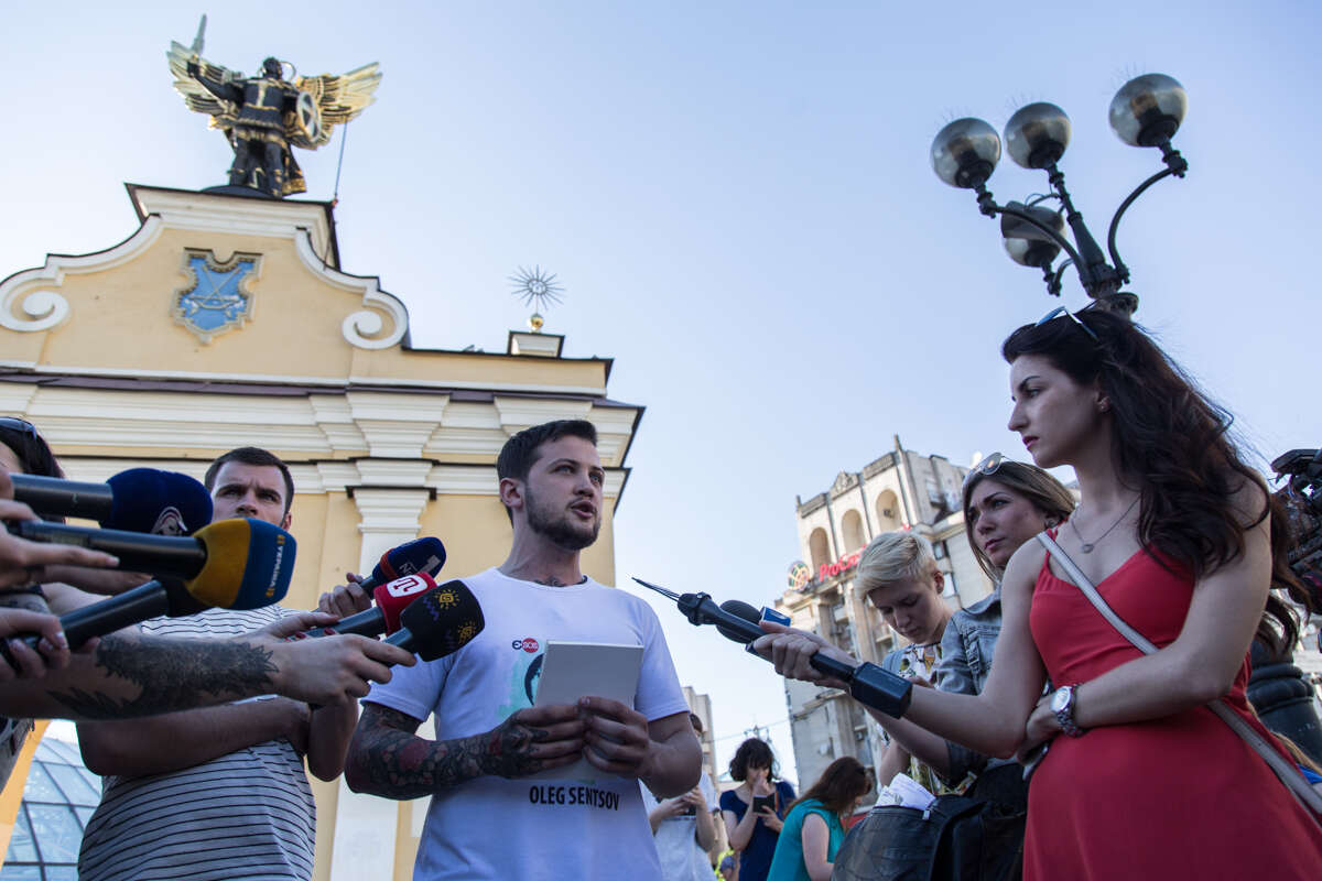 İnsan hakları savunucuları ve sivil toplum aktivistleri Rusya’da yasadışı olarak tutuklu bulunan Ukraynalı siyasi tutuklu Oleg Sentsov’un doğum günü vesilesiyle Kiev’in Bağımsızlık Meydanı’nda 13 Temmuz’da destek mitingi düzenledi.