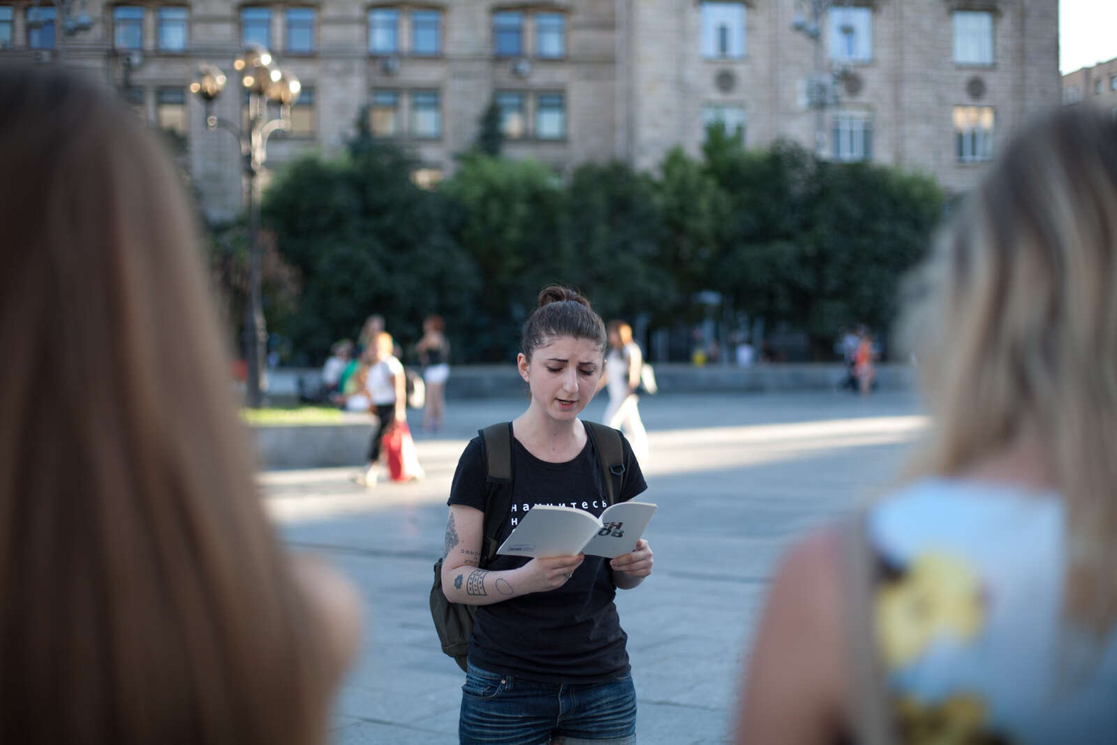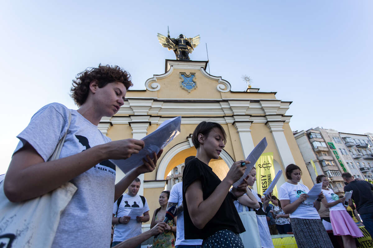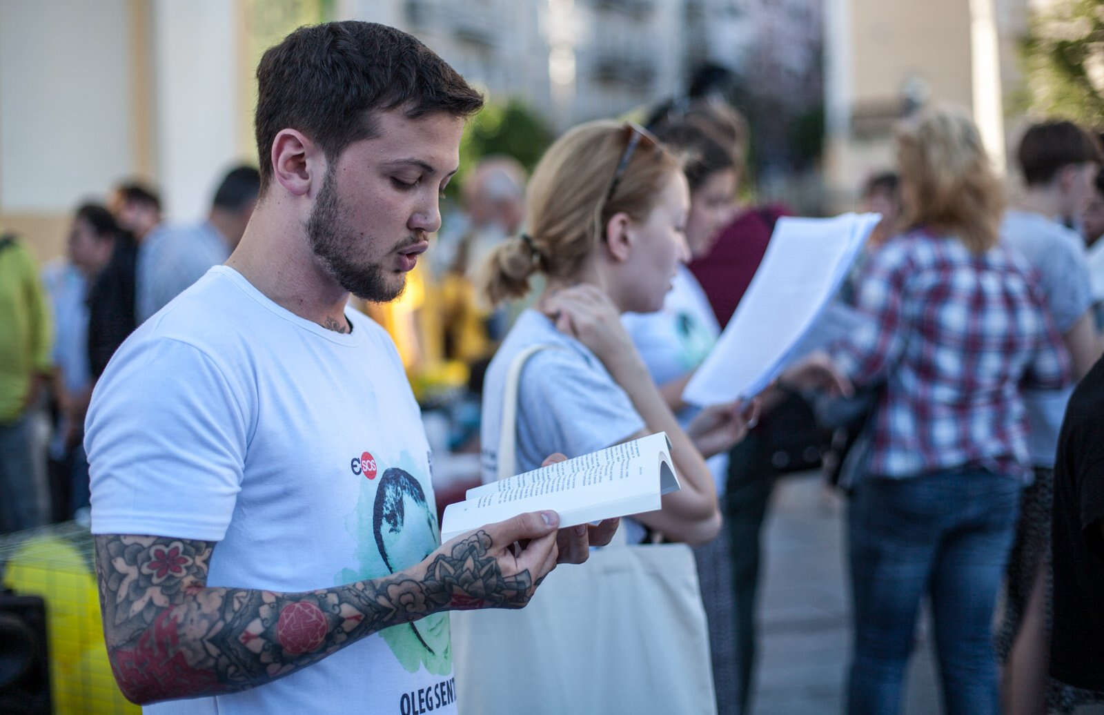 Etkinlik çerçevesinde aktivistler Oleg Sentsov’un eserlerinden parçalar okudu.