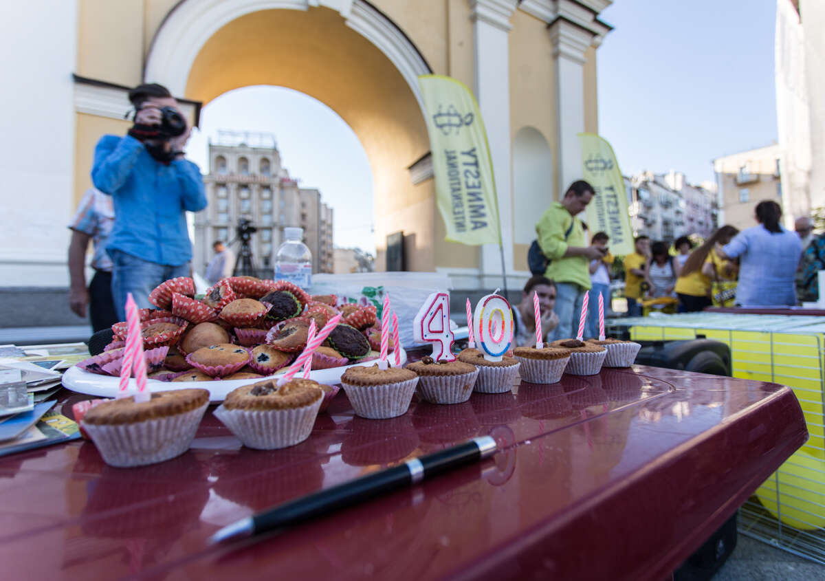 Aktif vatandaşlar Sentsov’a mektuplar yazarken etkinlik organizatörleri Oleg Sentsov’un 40. doğum günü vesilesiyle tatlı ikramını hazırladı.