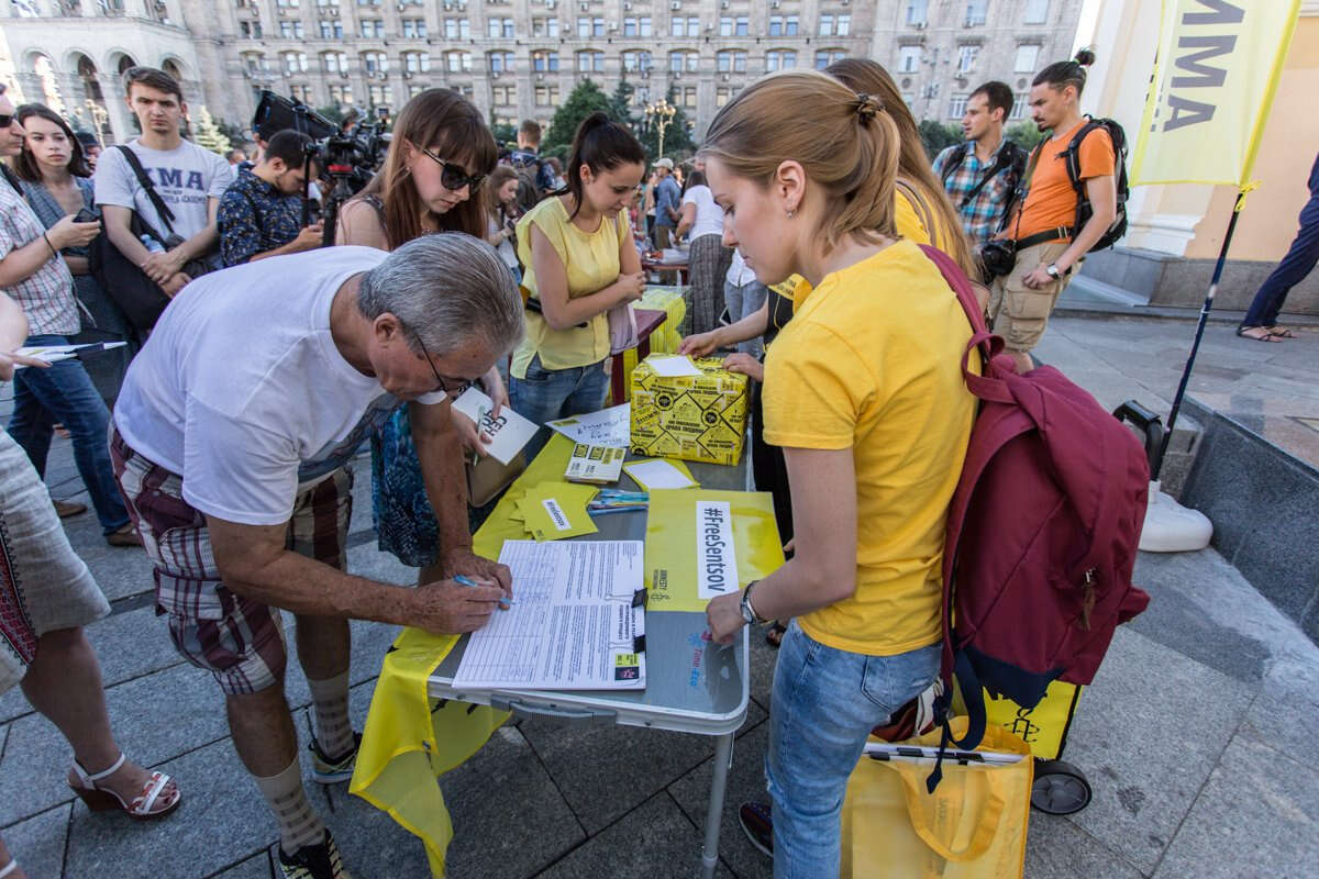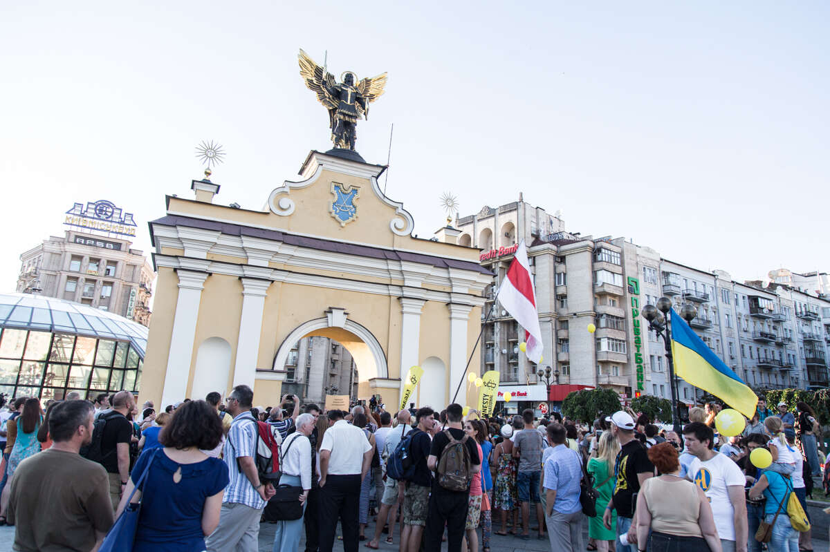 Ukrayna’nın aktif vatandaşları, ilk önce Oleg Sentsov’a destek göstermek amacıyla meydanda toplandı.