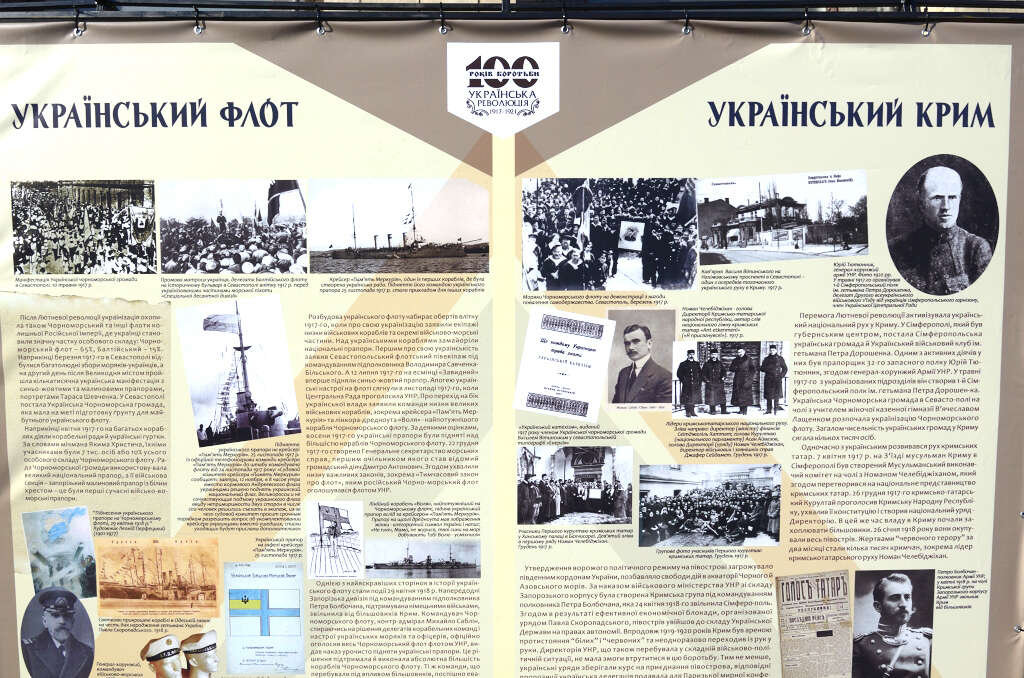 Sergide Merkez Rada, Hetmanlık, Ukrayna Halk Cumhuriyeti ve Batı Ukrayna Halk Cumhuriyeti Başkanlığı, Ukrayna’ya ait Kırım, Ukrayna filosu, askeri inşaat, diplomasi, eğitim ve kültür, Ukrayna para birimi ve devlet sembollerini konu alan stantlar yer aldı.