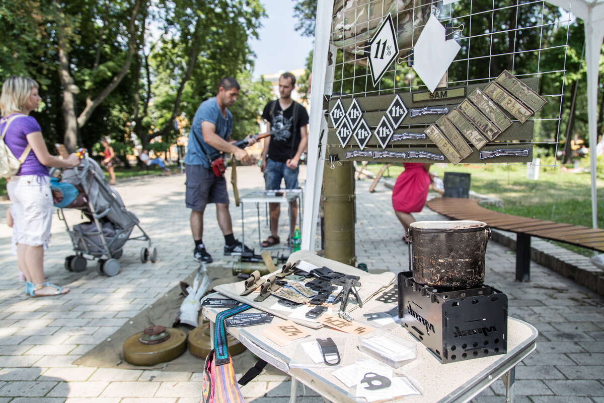 Ukrayna doğusundaki çatışmalar sırasında yaralanan gönüllü askerin tedavisi için para toplamak amacıyla Kiev’in Şevçenko Parkında kermes kuruldu.