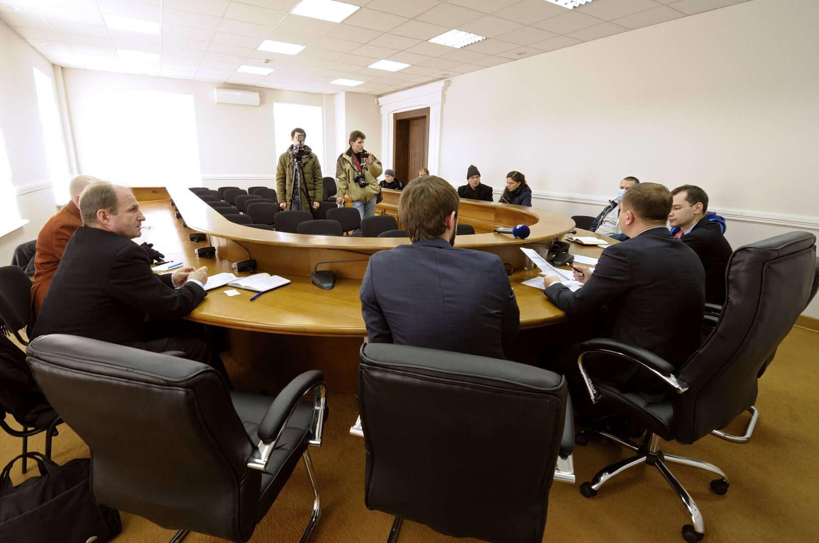 Miting düzenleyen aktivistlerin heyeti Kiev’in Şevçenkovskiy Bölge Savcılığı’nın toplantı salonunda