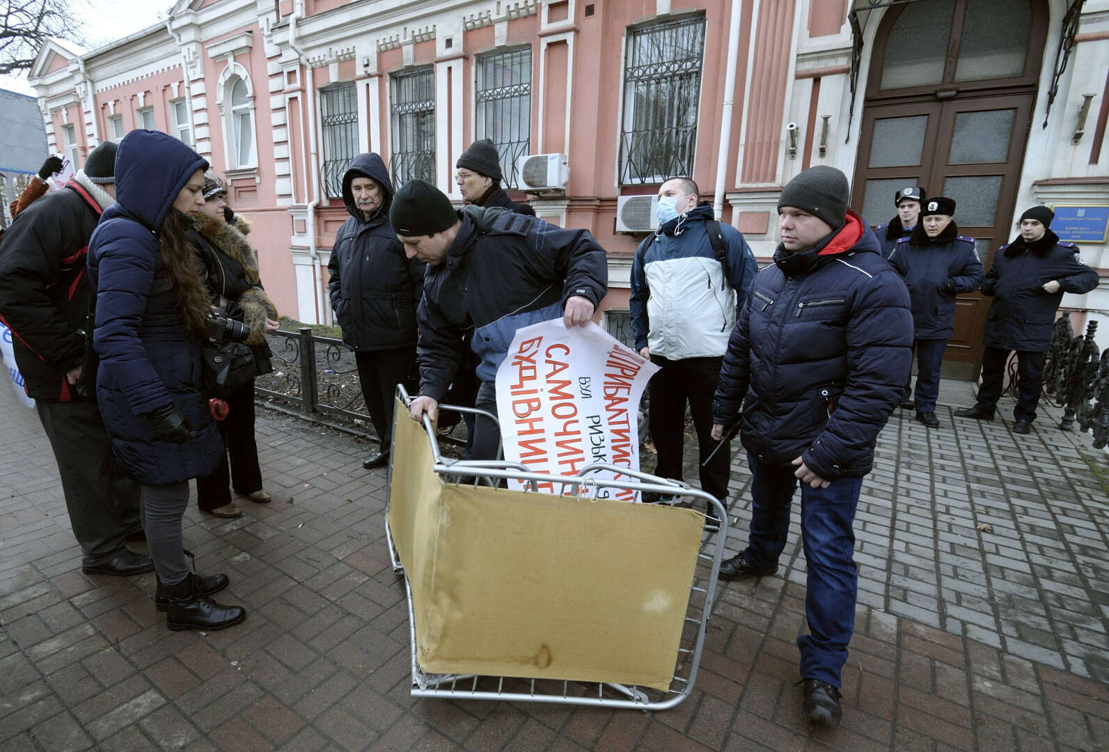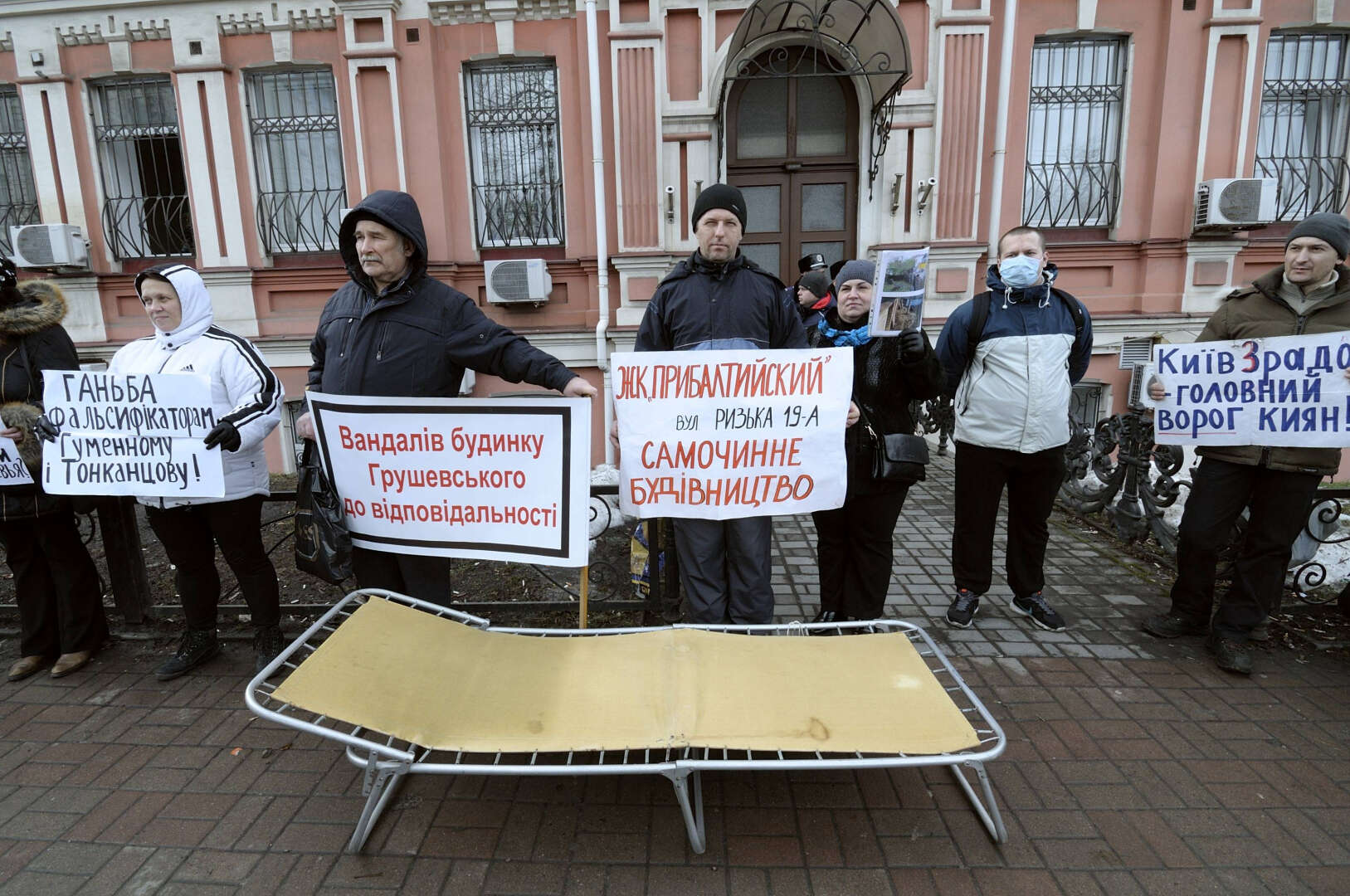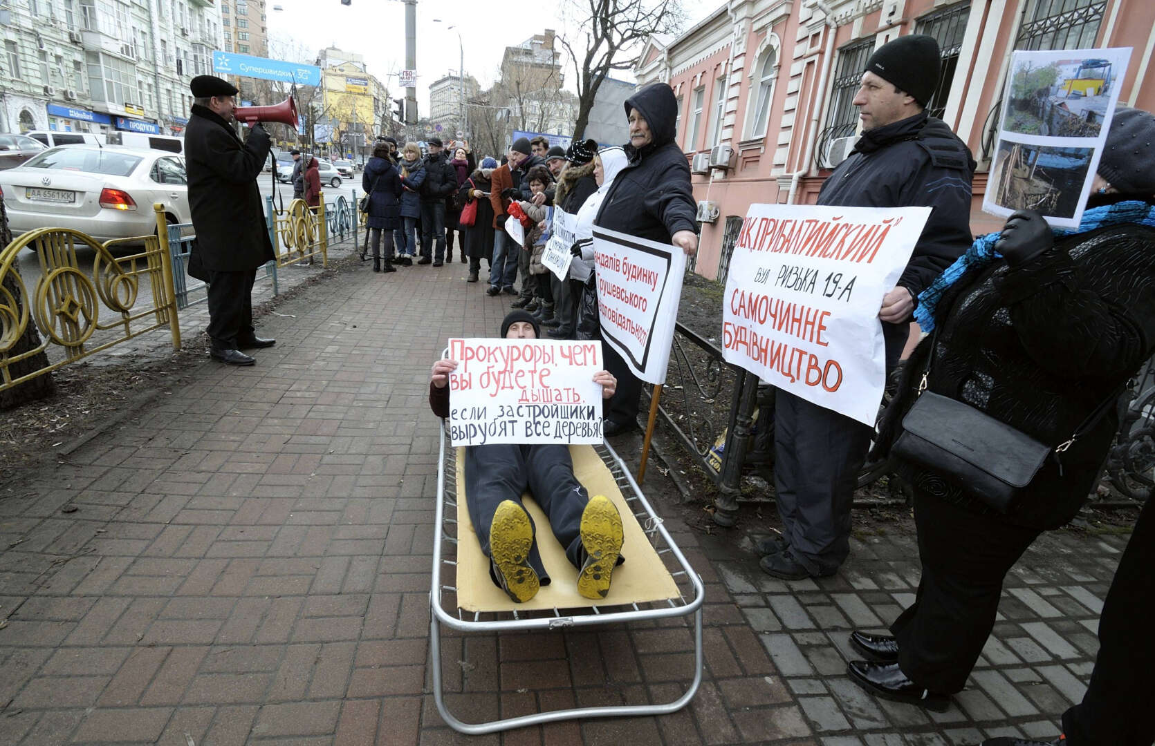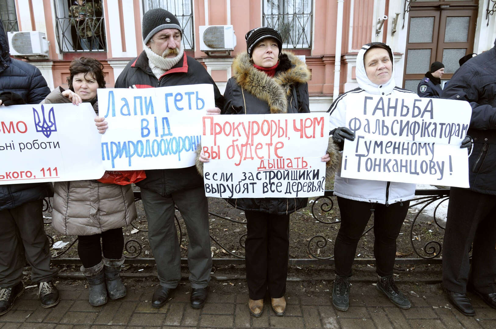 Kiev Şevçenkovskiy Bölge Savcılığı önünde “Aktivistlere Karşı Dava Uydurulmasına STOP” mitingi düzenleyen eylemciler inşaat firmaları, yolsuzluk yapan Kiev Belediyesi yetkililerinin siparişiyle aktivistlere karşı açılan davaların kapatılmasını talep etti.