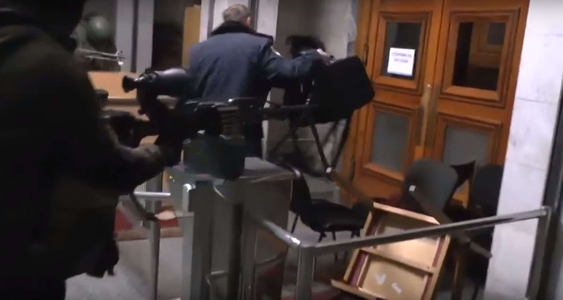 Rusya’nın özel tim görevlileri binadan güvenlik görevlilerini kovuyor.
