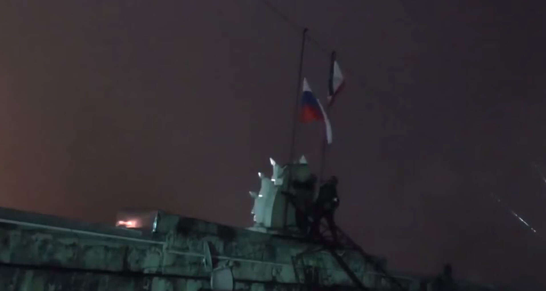 İşgalcilerin yaptığı ilk şey, idari binalardaki Ukrayna bayraklarını indirmek ve Rusya bayraklarını çekmek oldu.