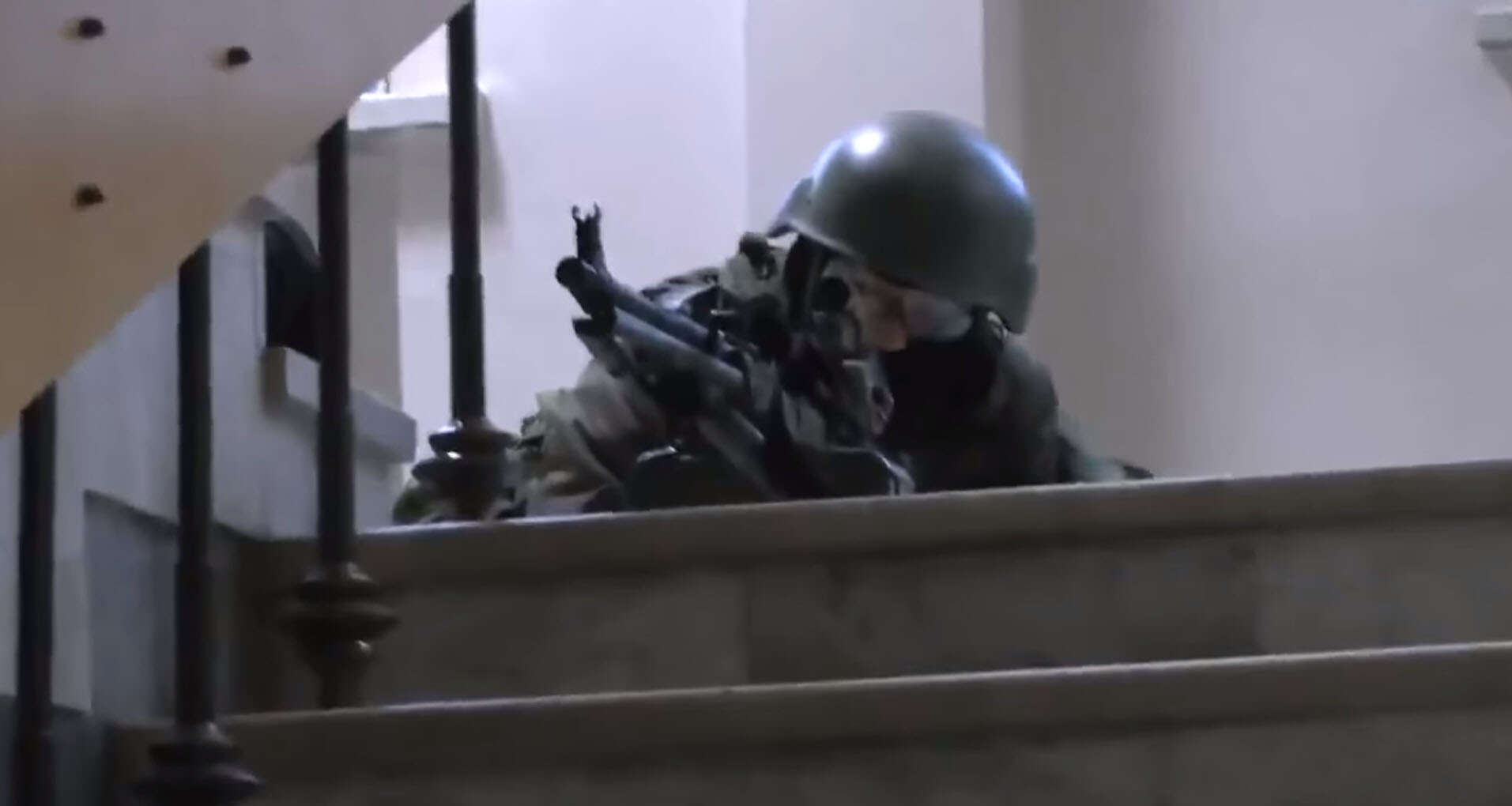 Bina tamamen bloke edildi, Rusya’nın özel tim görevlileri askeri eylemde bulunmaya hazırlanıyor.