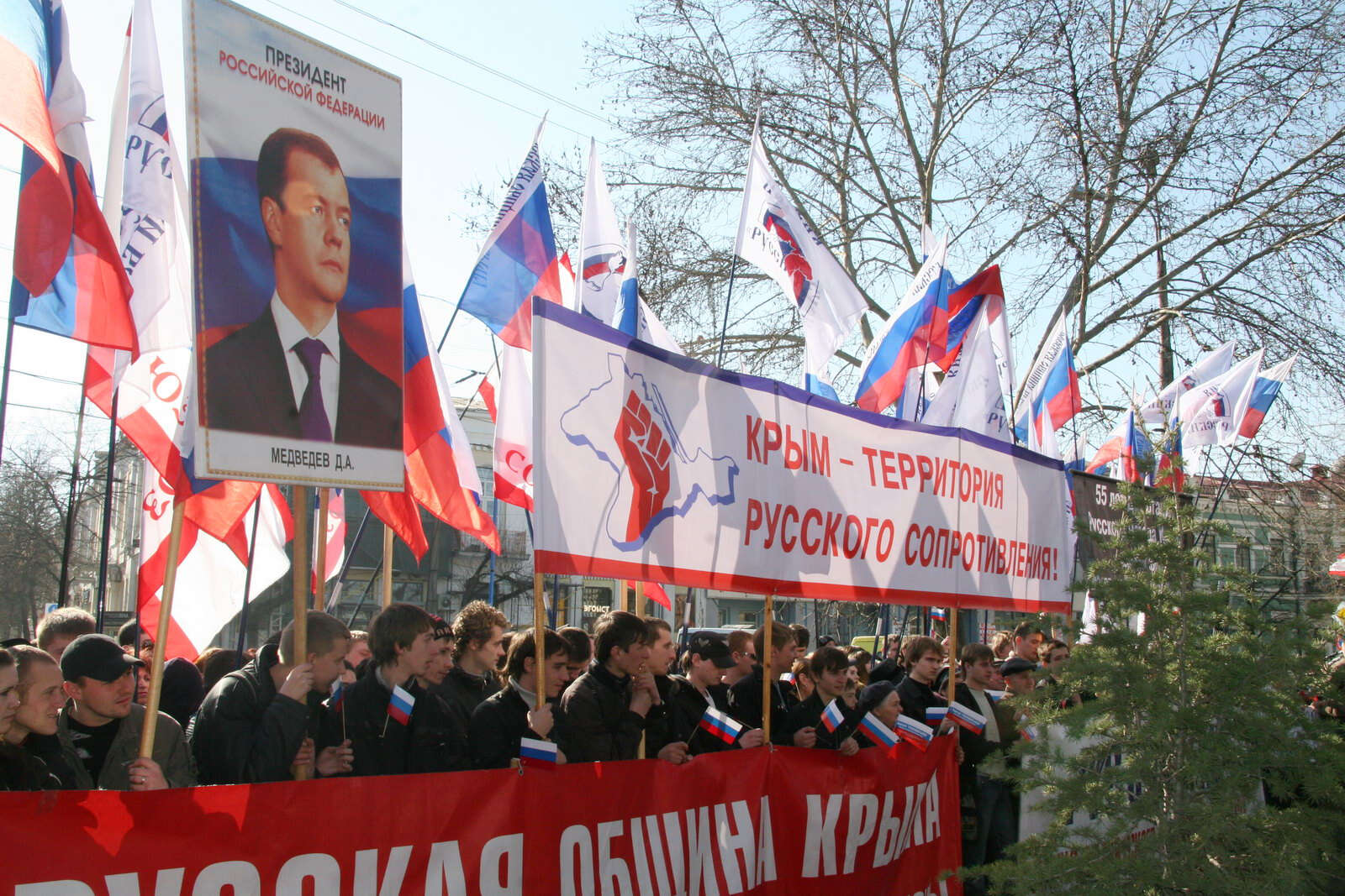“KIRIM RUS CEMİYETİ” İLE UKRAYNA “RUS BLOĞU” PARTİSİ KIRIM BÖLGE TEŞKİKLATININ UKRAYNA CUMHURBAŞKANI DAİMİ KIRIM TEMSİLCİLİĞİ BİNASI ÖNÜNDE ORTAK OLARAK YAPTIĞI MİTİNG