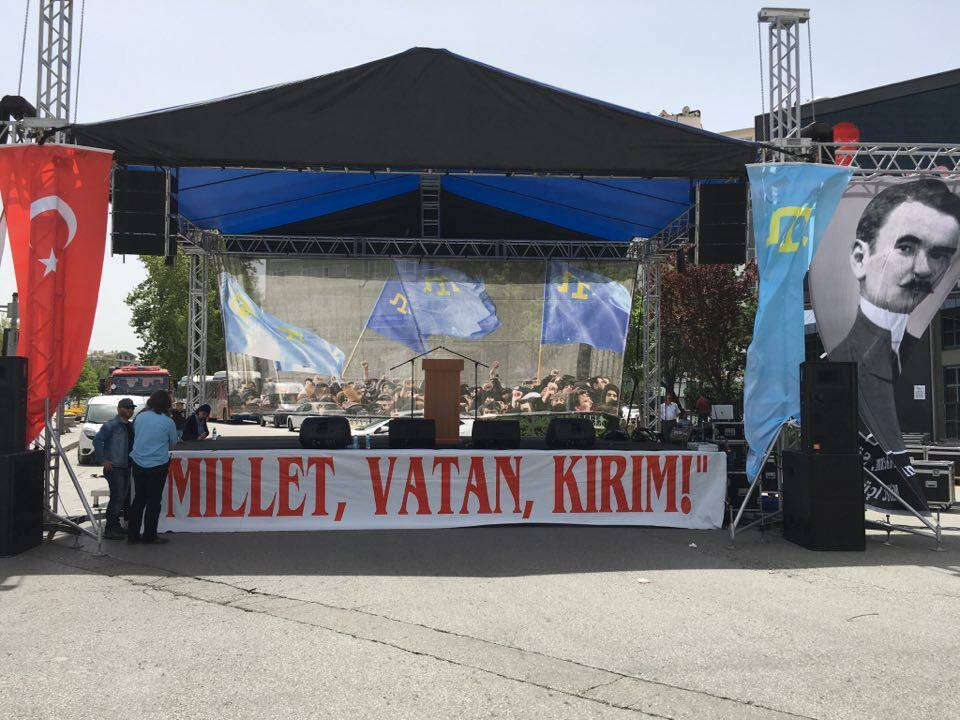 Miting için kurulan platformda "Millet, Vatan, Kırım!" sloganı yer aldı.