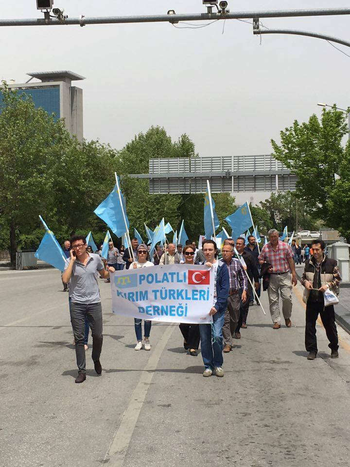 “Kırım Türk’tür, Türk kalacak” sloganları atılan mitingde, “Kırım, Kırım Tatarlarının vatanıdır, Rus kolonisi değil”, “Kırım benim vatanım, ben Kırım’ı çok seviyorum” yazılı pankartlar açıldı.