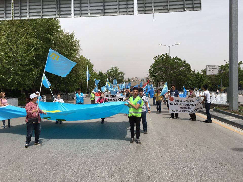 Kırım Tatar Teşkilatları Platformu'nun organize ettiği Kırım Tatar Sürgünü Matem Mitingi, sürgünü 73. yılında anmak ve işgal altındaki Kırım'a destek için 13.30 itibarıyla Ankara Anadolu Meydanı'nda gerçekleştiriliyor.