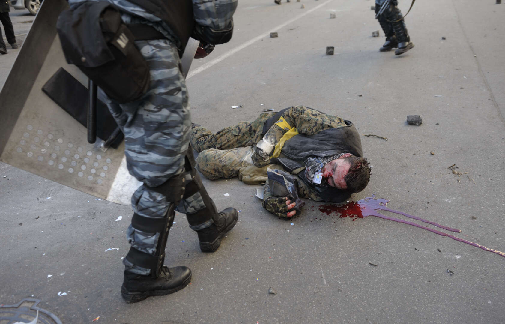 Direniş gösterilmesine kızgın olan Berkut görevlileri, yaralanan ve geri kalan eylemcileri dövüyordu.