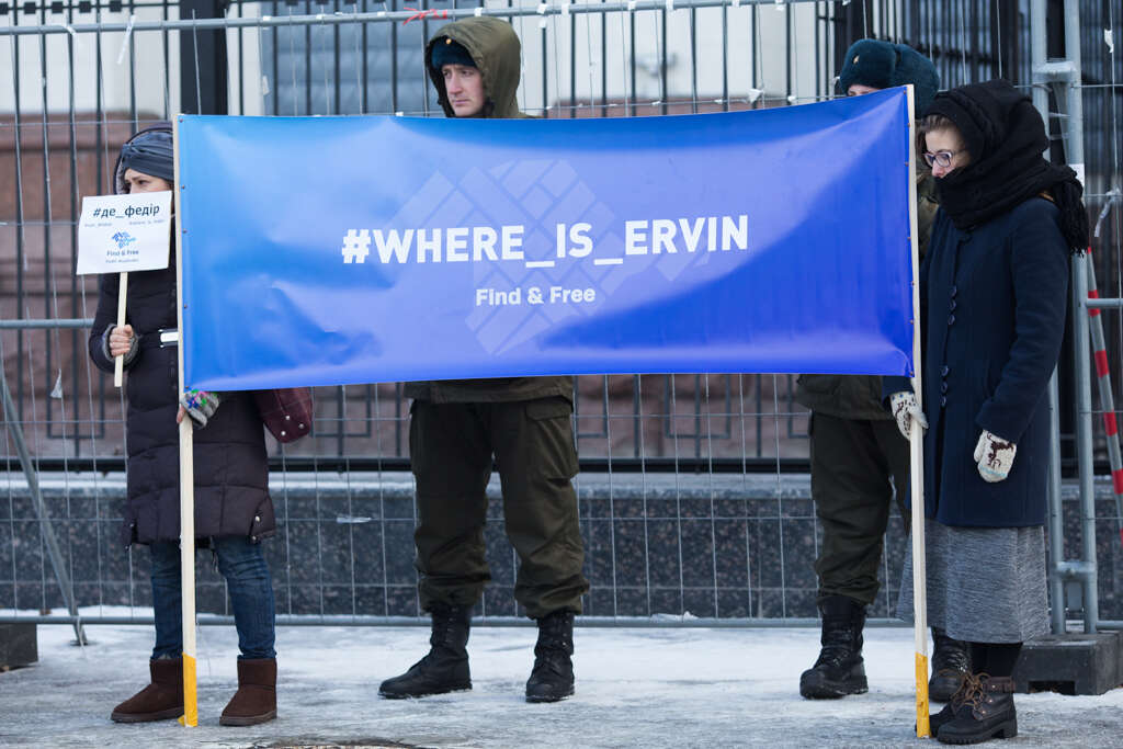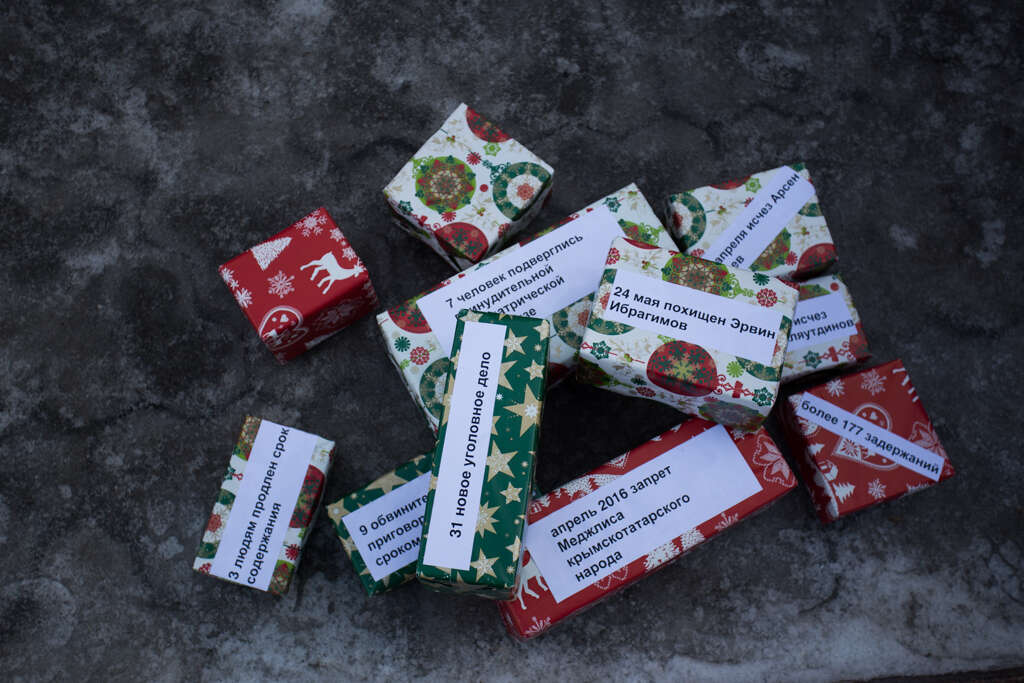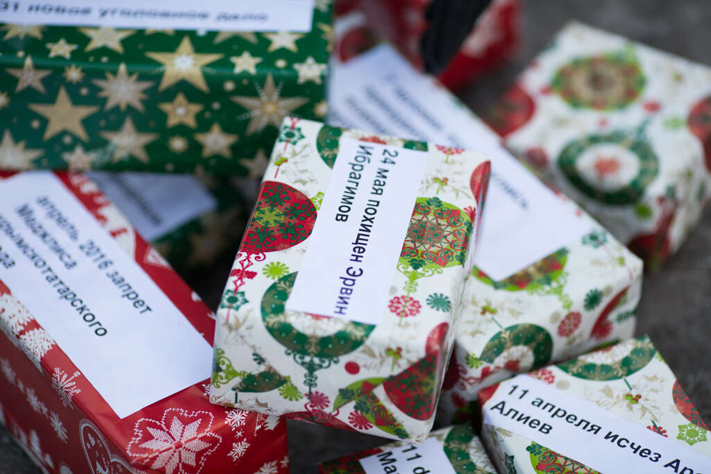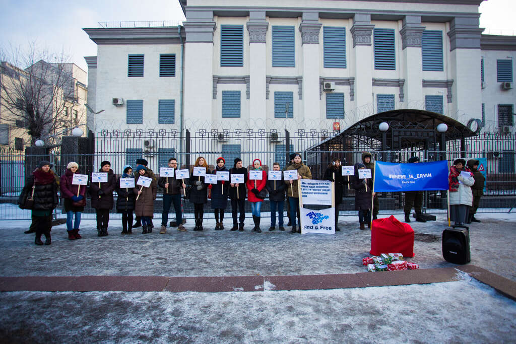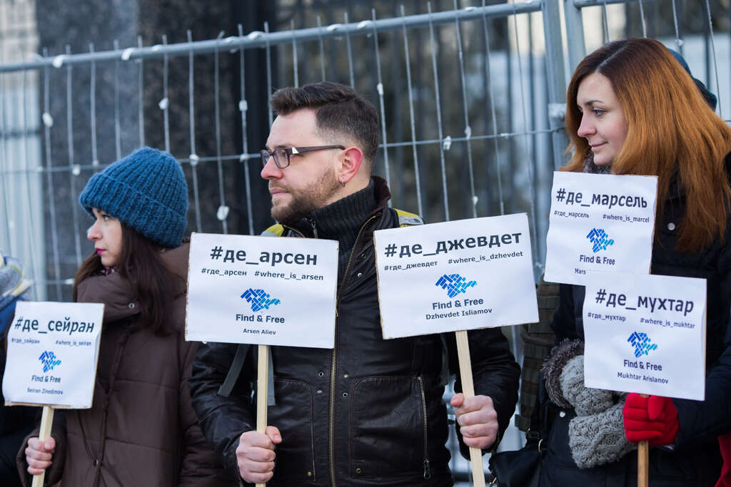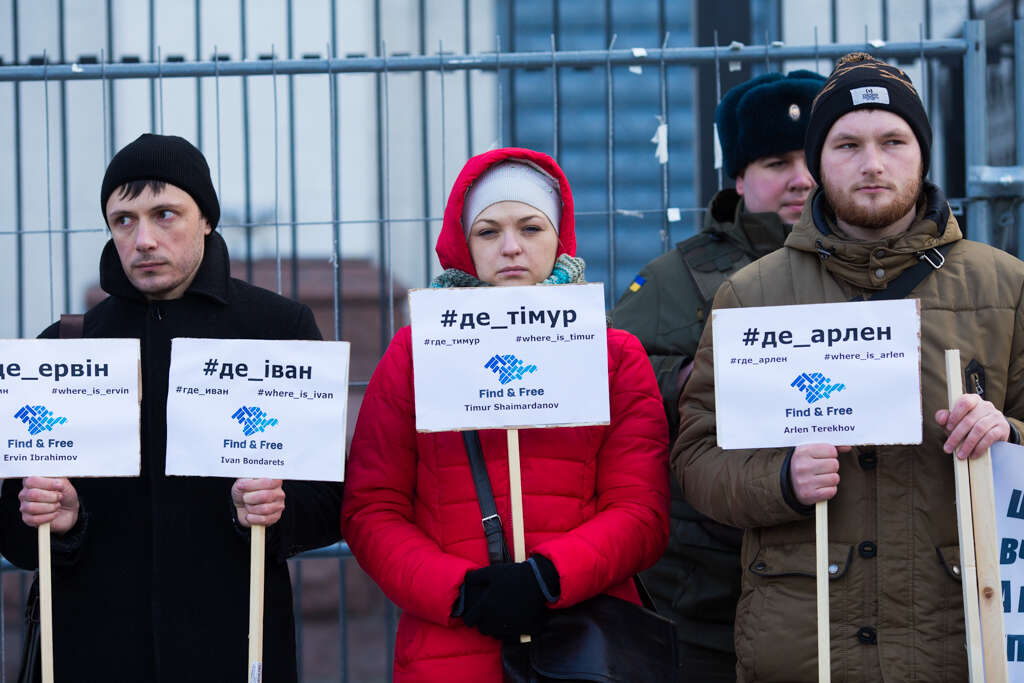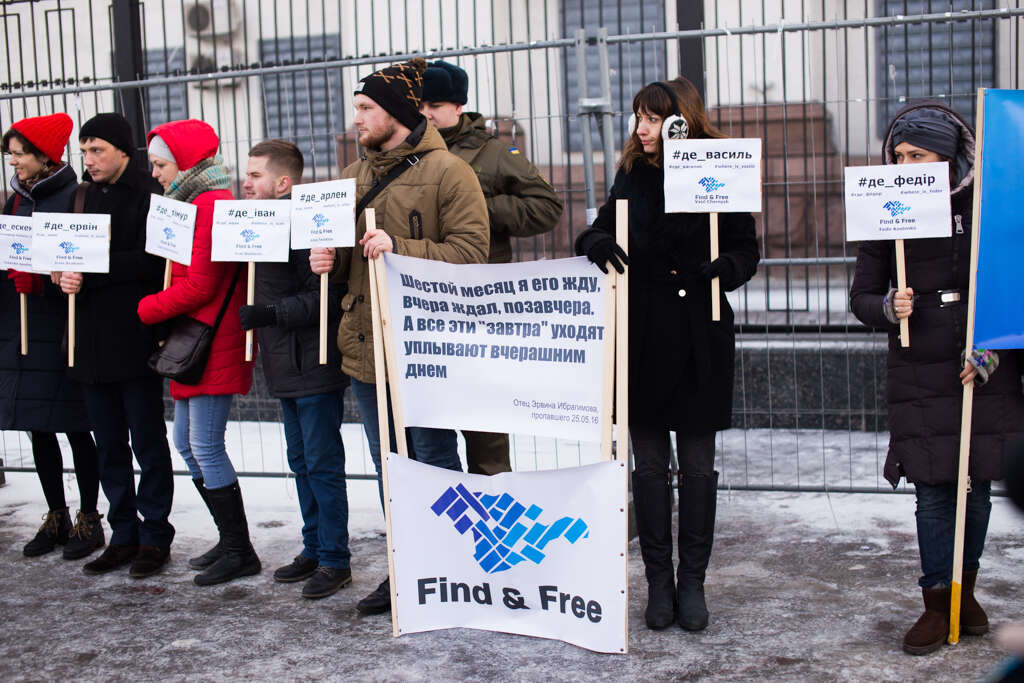 Yeni yıl öncesinde onlarca aktivist, Rusya Federasyonu’nun Kiev Büyükelçiliği önünde alışıldık pankartlar ve sorular ile toplanarak Kırım’ın Rus işgali altında bulunduğu sırada kaybolan Kırımlıların aileleri için destek eylemi düzenledi.
